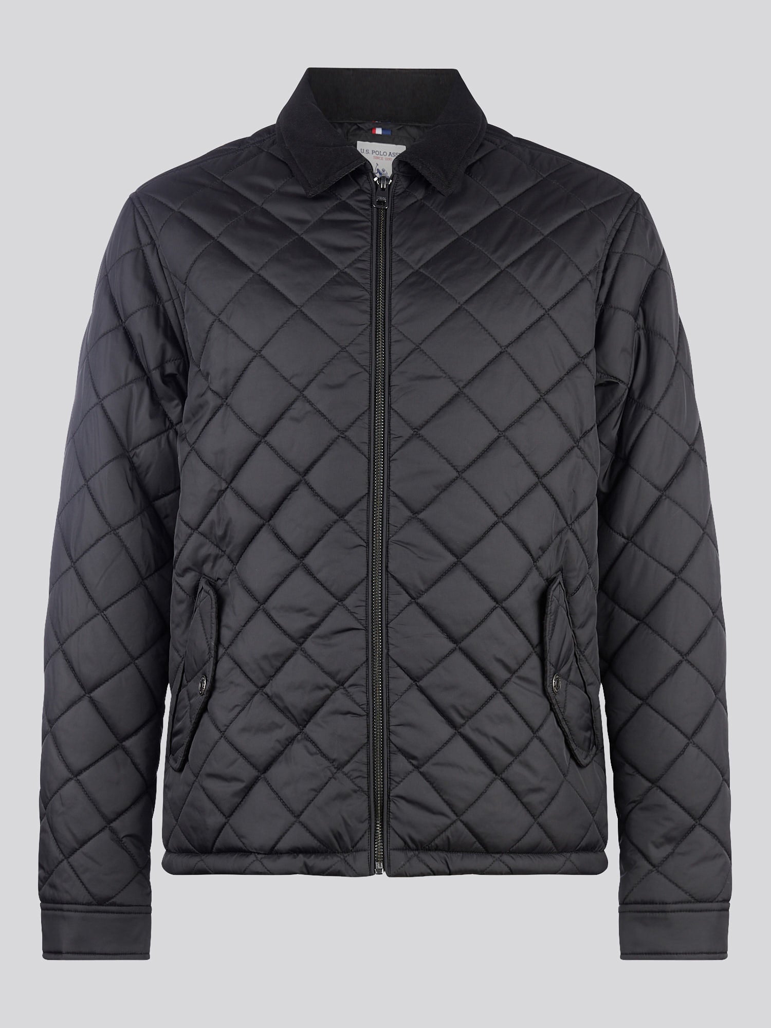 Channelling classic equestrian heritage with a refined, utilitarian edge, the U.S. Polo Assn. mens Diamond Quilt Padded Collared Jacket is designed for transitional dressing with enduring appeal. Cut with a structured collar in contrast corduroy, it brings a sophisticated touch to cold-weather layering. Wear it over knitwear or a textured quarter-zip with straight-leg denim to strike the perfect balance between town and country.