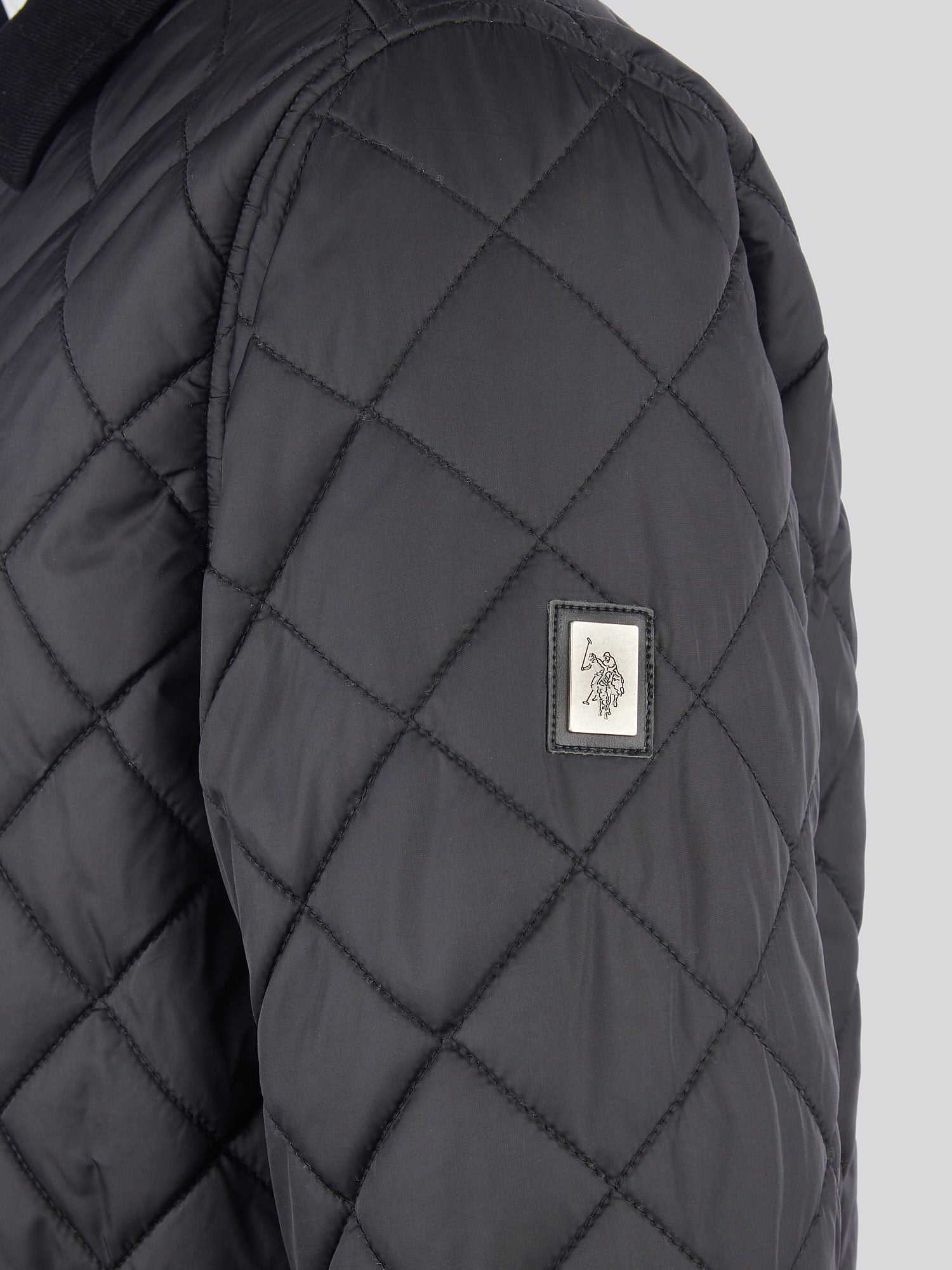 Mens Diamond Quilt Padded Collared Jacket in Black