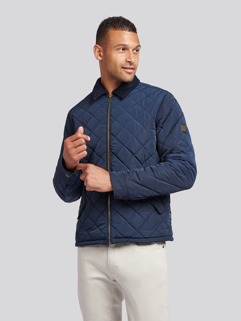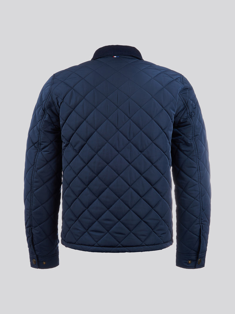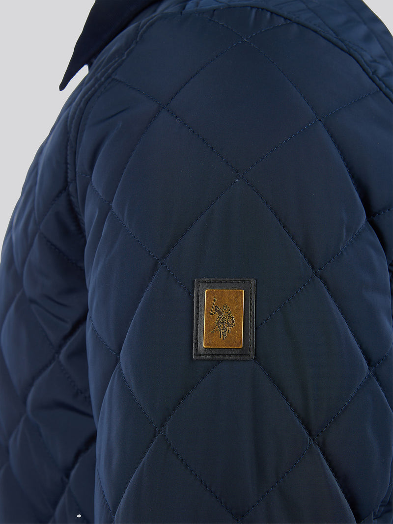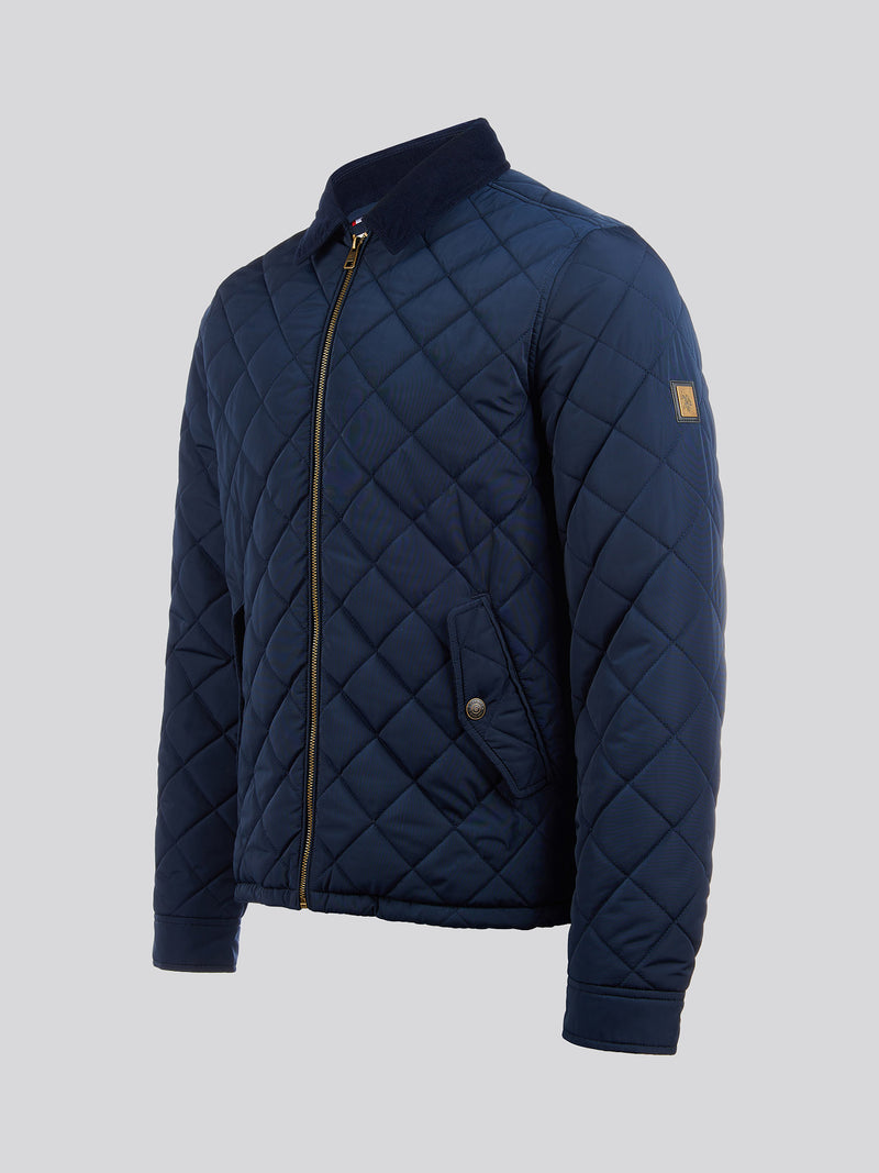 Mens Diamond Quilt Padded Collared Jacket in Dark Sapphire Navy