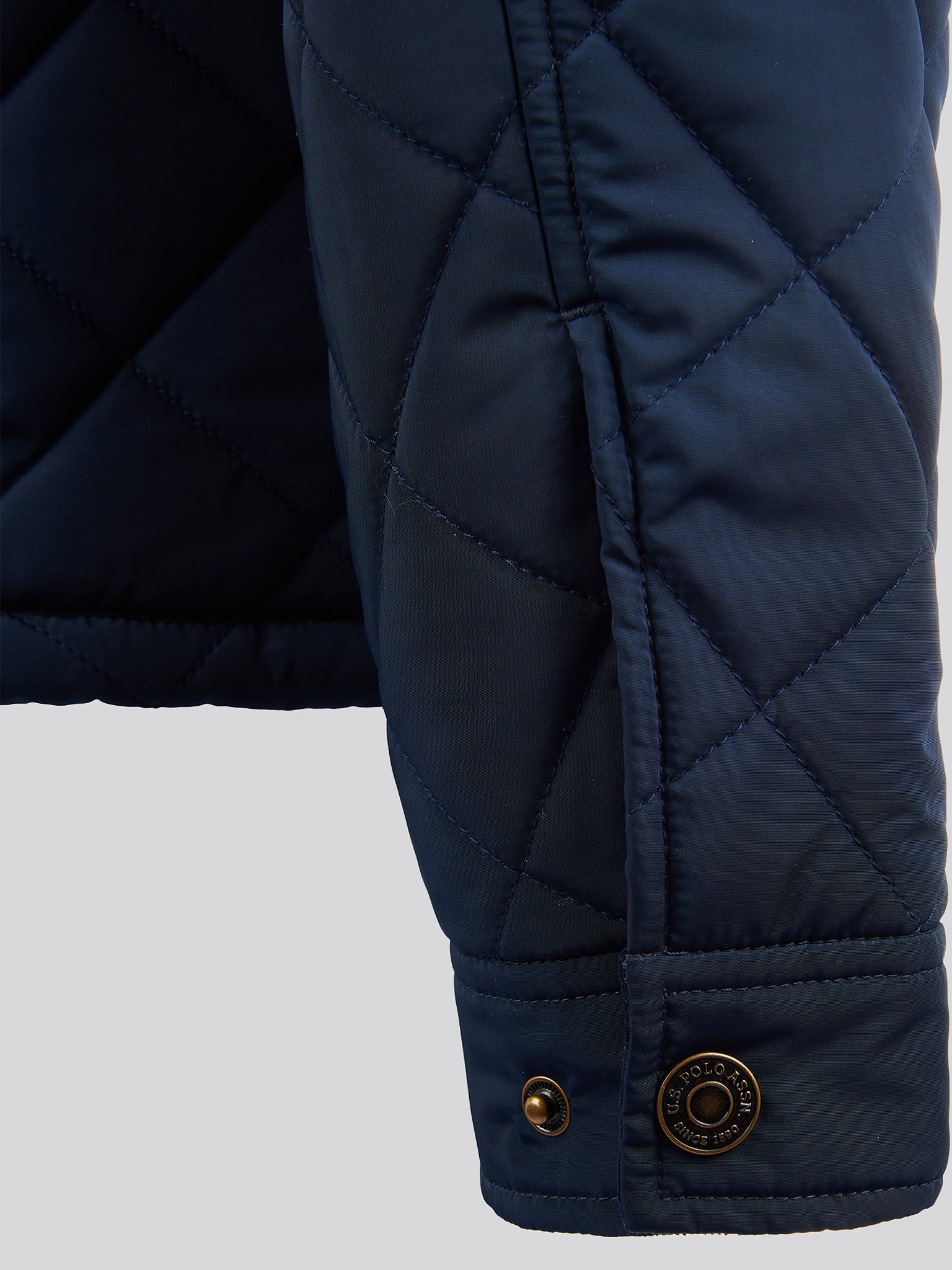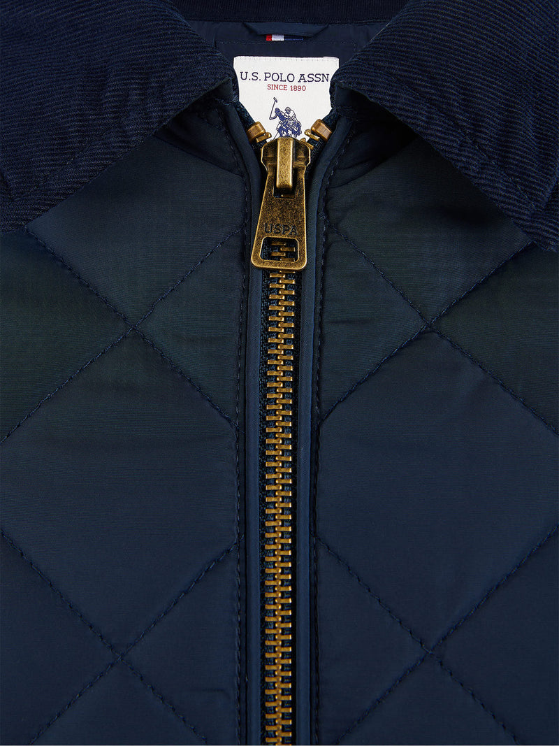Channelling classic equestrian heritage with a refined, utilitarian edge, the U.S. Polo Assn. mens Diamond Quilt Padded Collared Jacket is designed for transitional dressing with enduring appeal. Cut with a structured collar in contrast corduroy, it brings a sophisticated touch to cold-weather layering. Wear it over knitwear or a textured quarter-zip with straight-leg denim to strike the perfect balance between town and country.