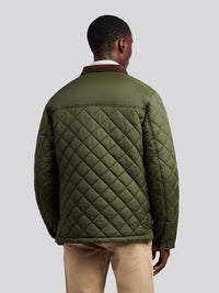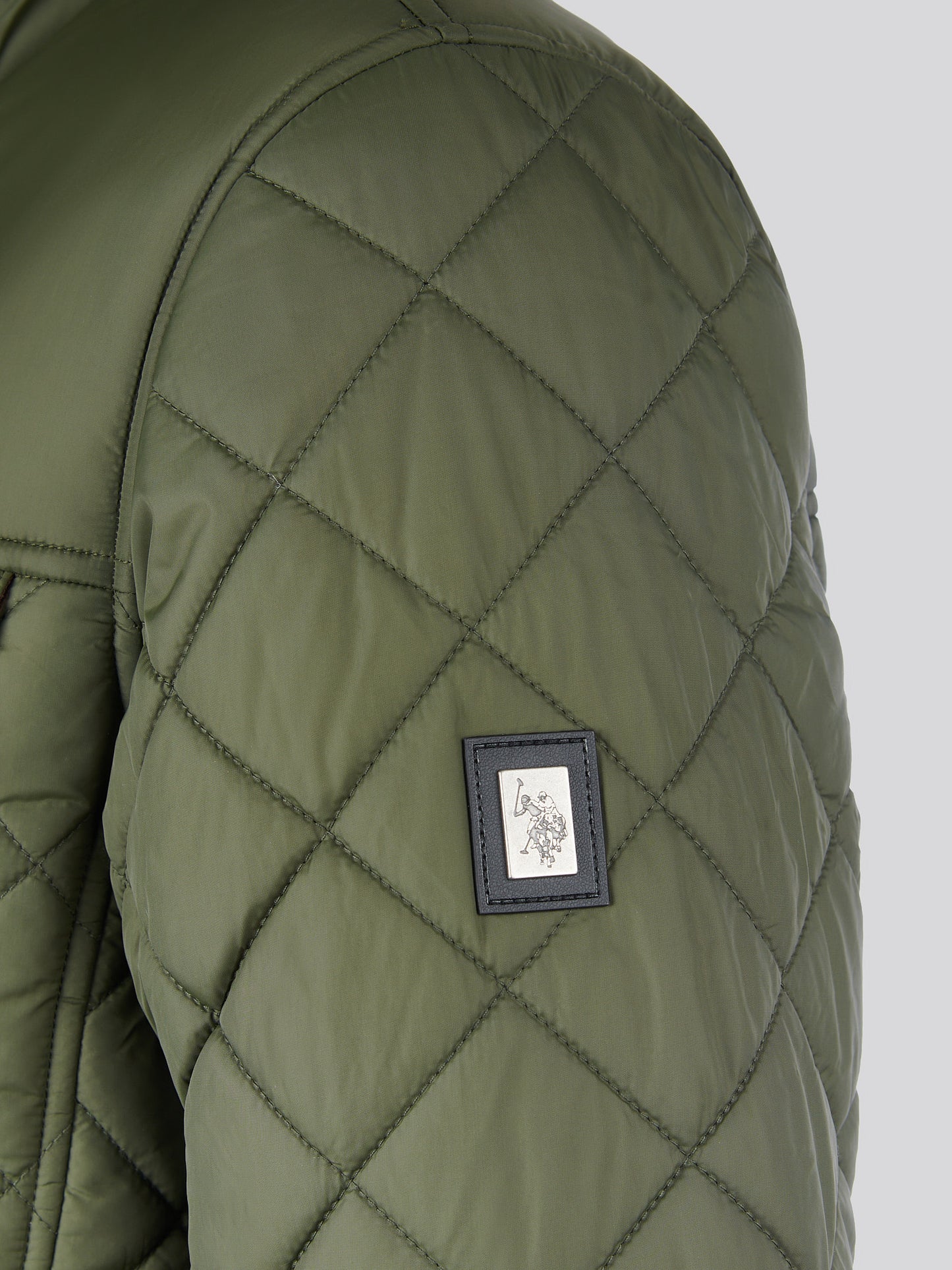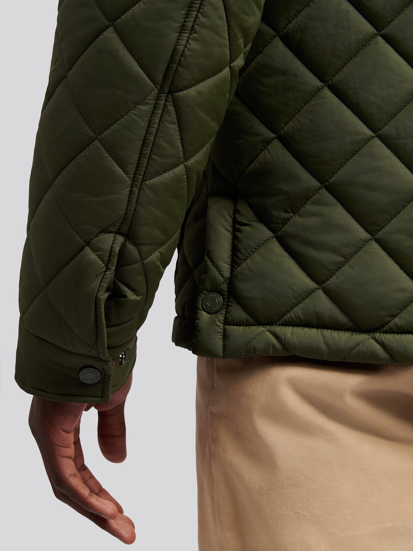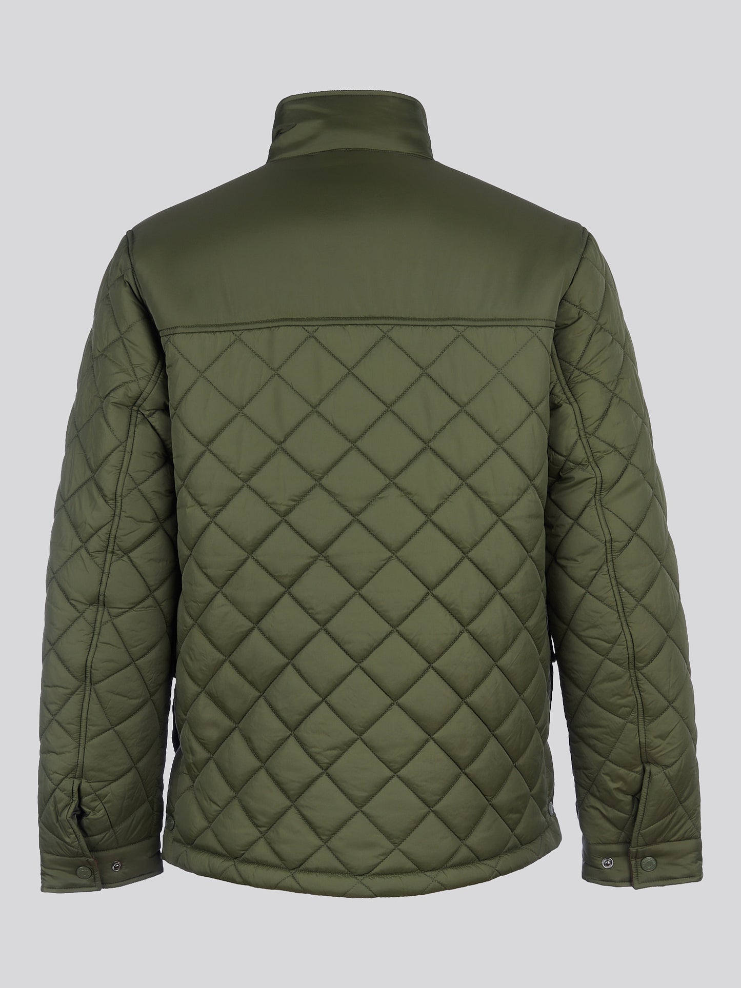 Mens Diamond Quilted Funnel Jacket in Forest Night