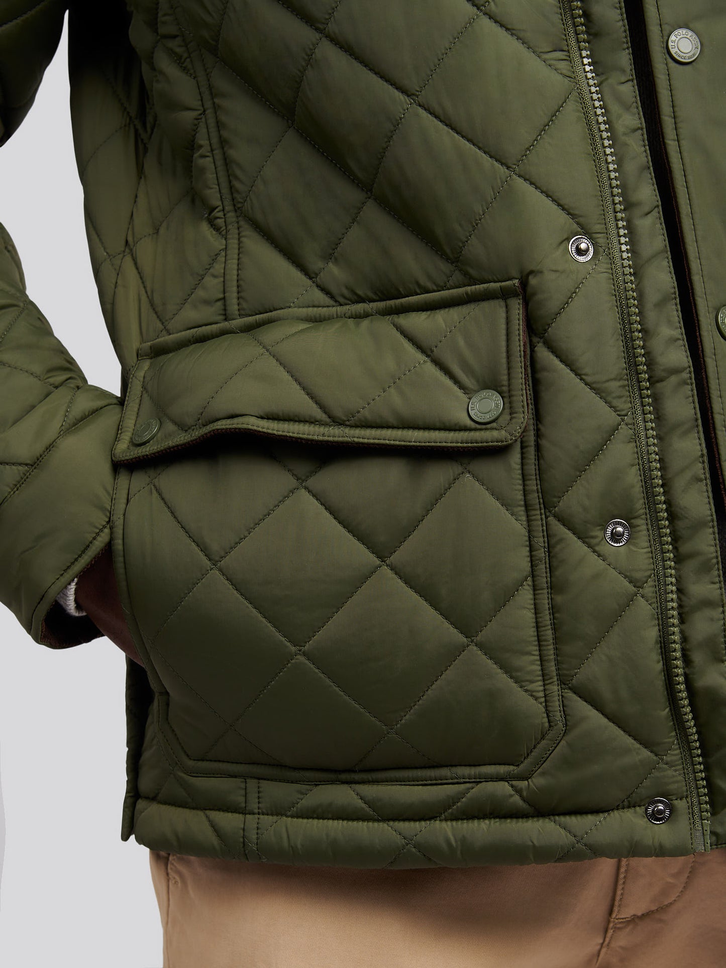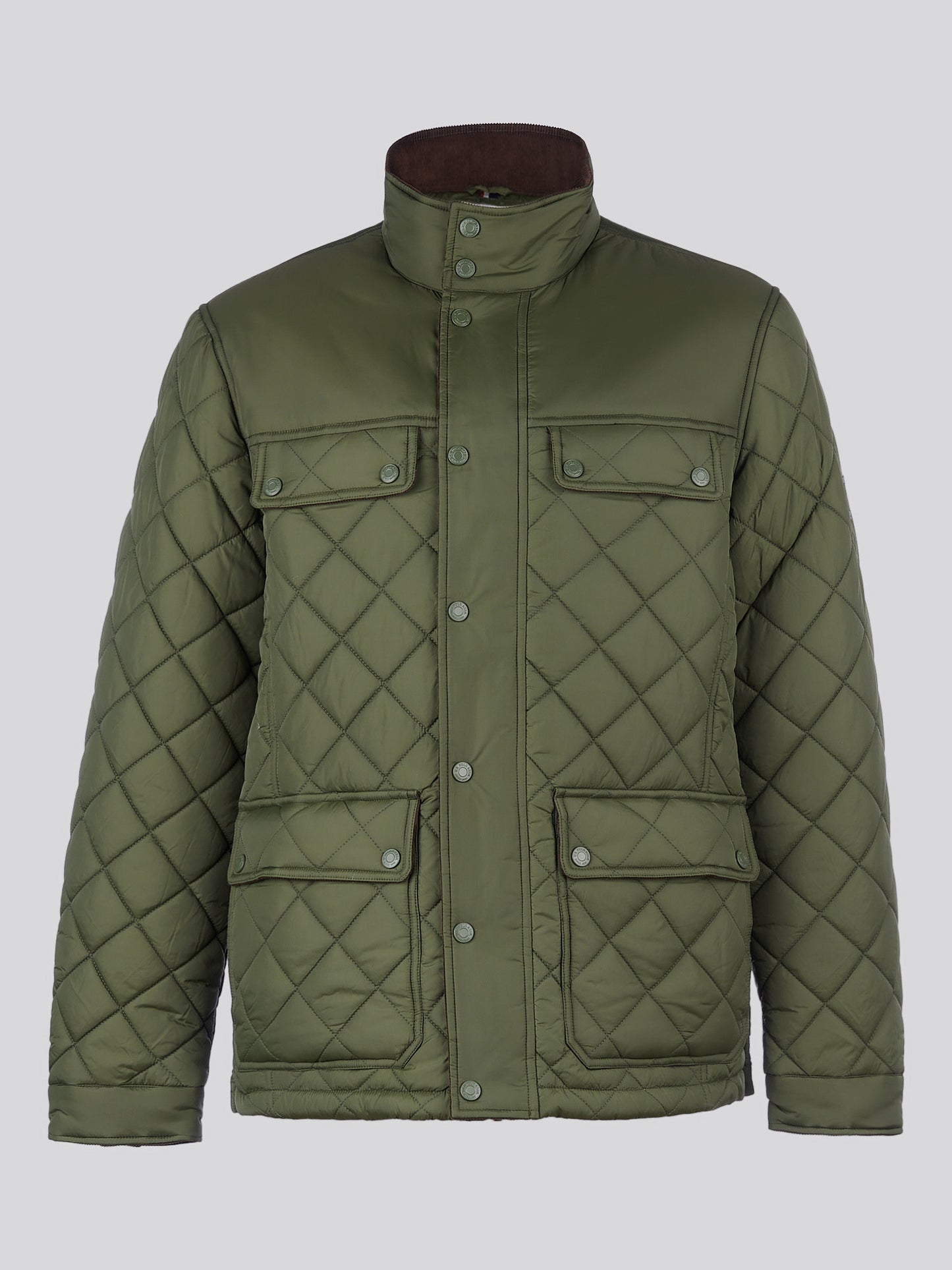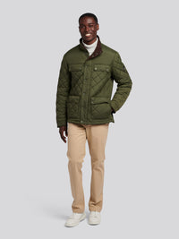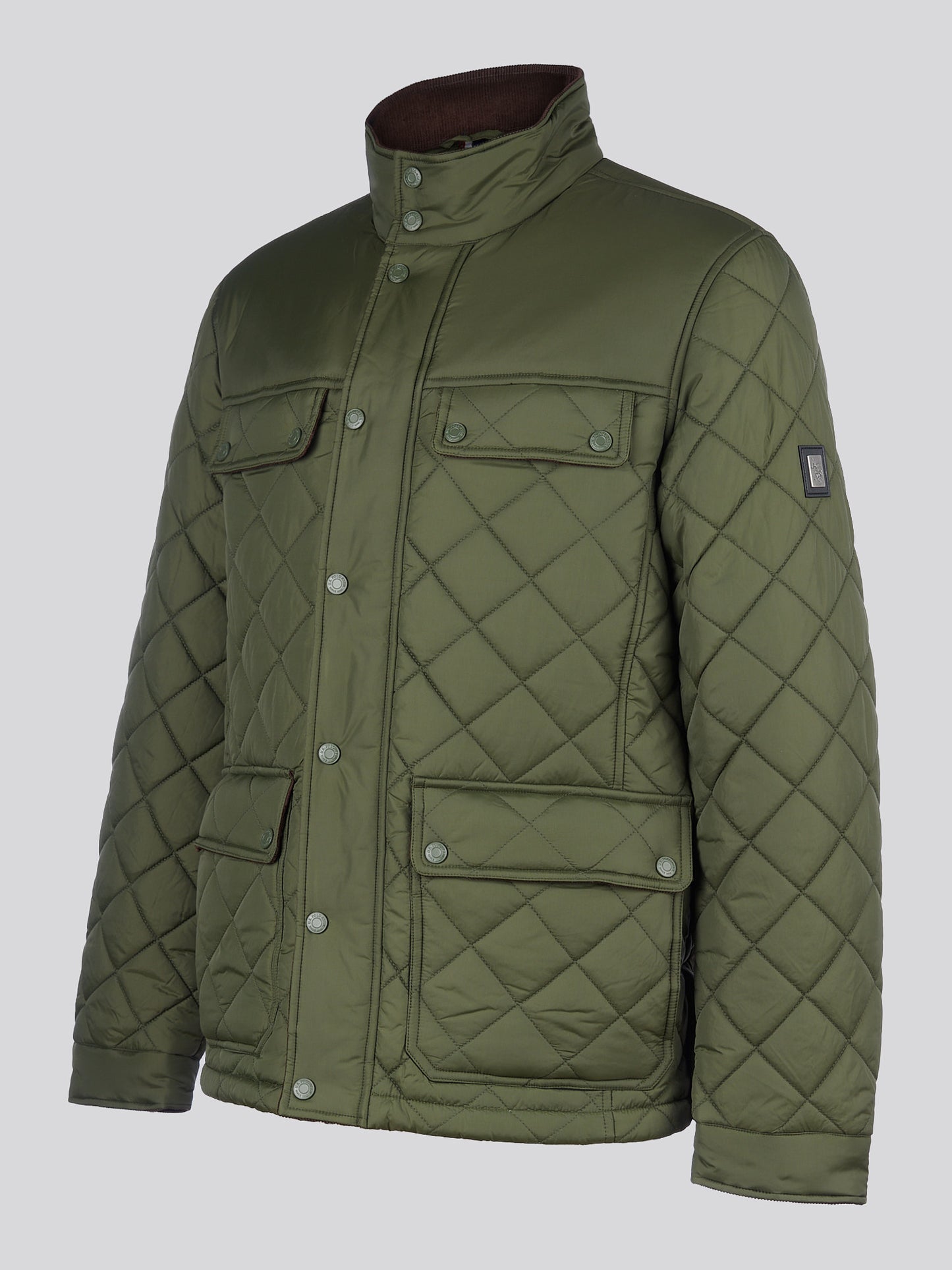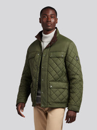 Mens Diamond Quilted Funnel Jacket in Forest Night