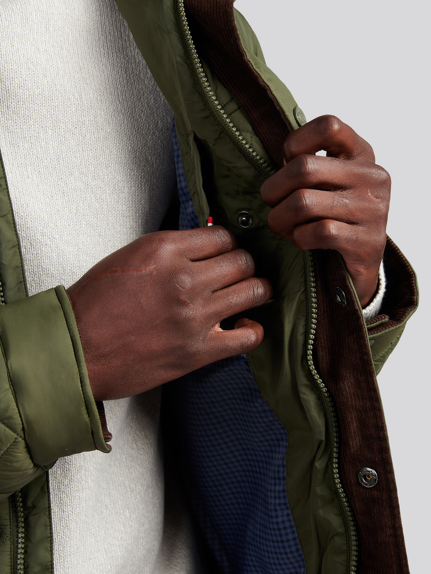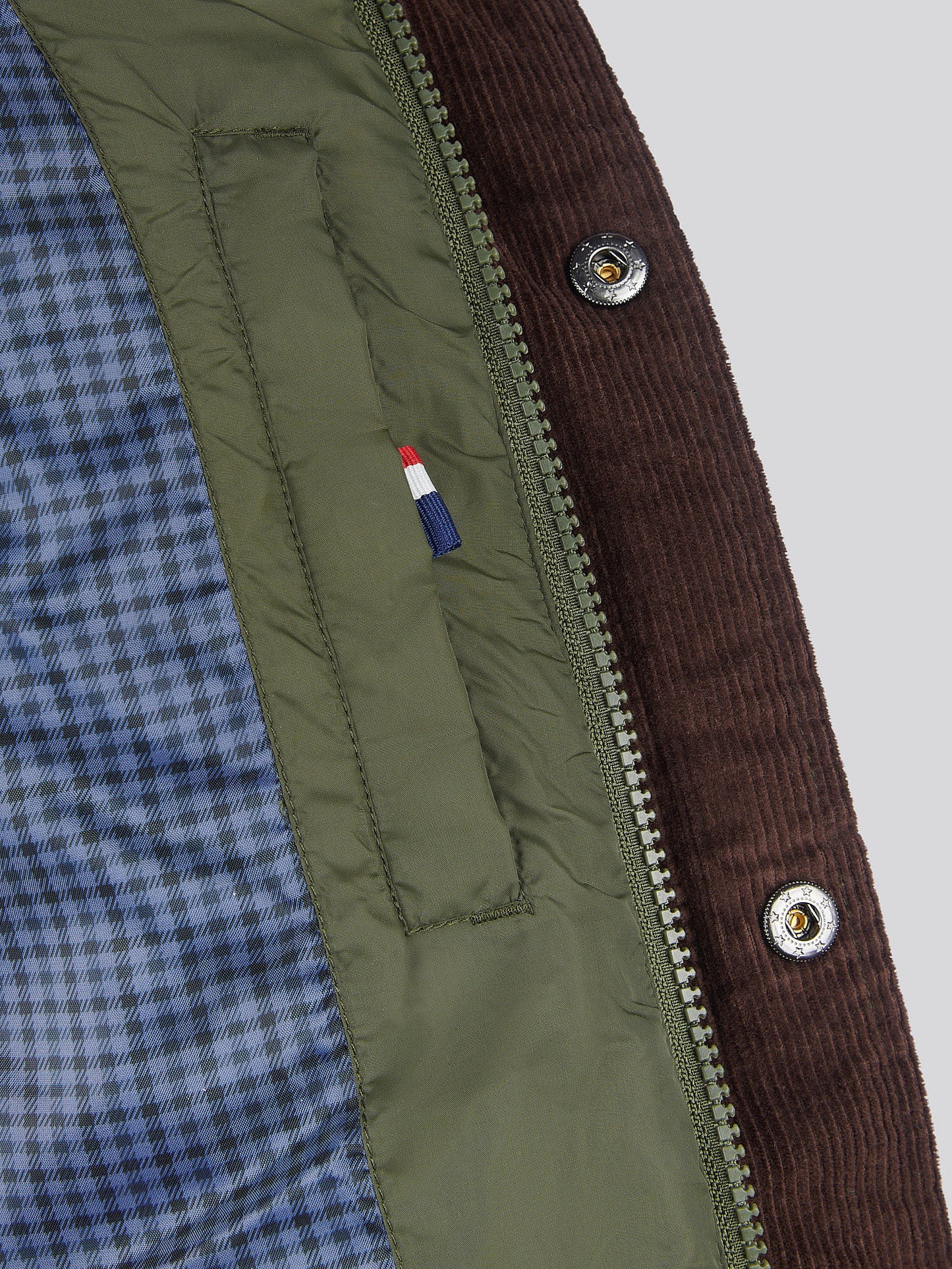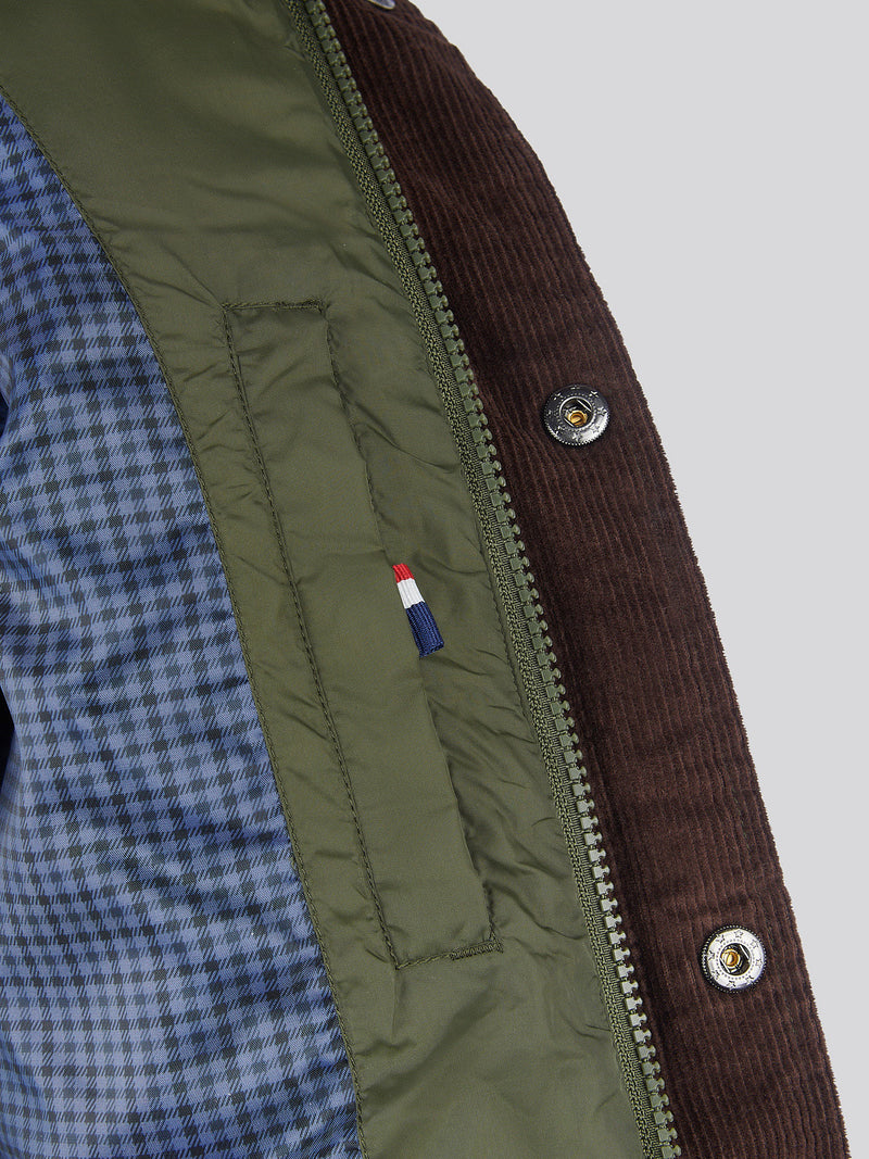 - Corduroy trim detail: Heritage-inspired fabric contrast