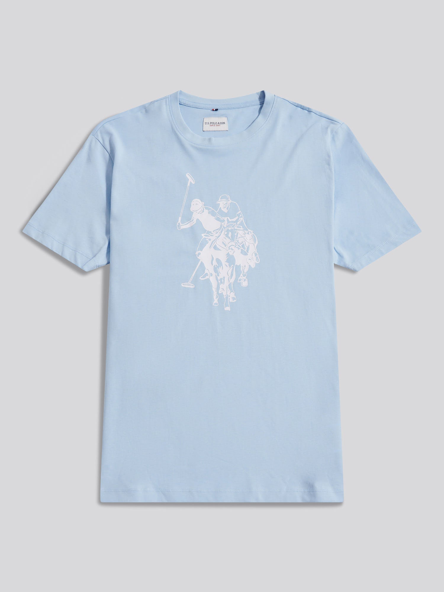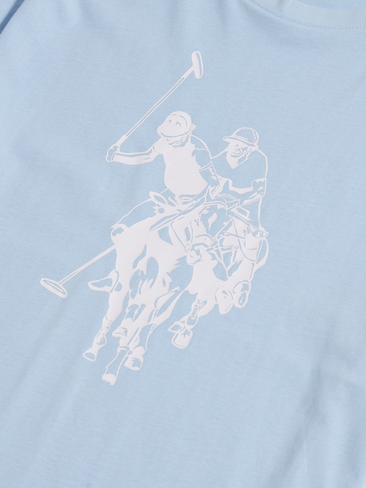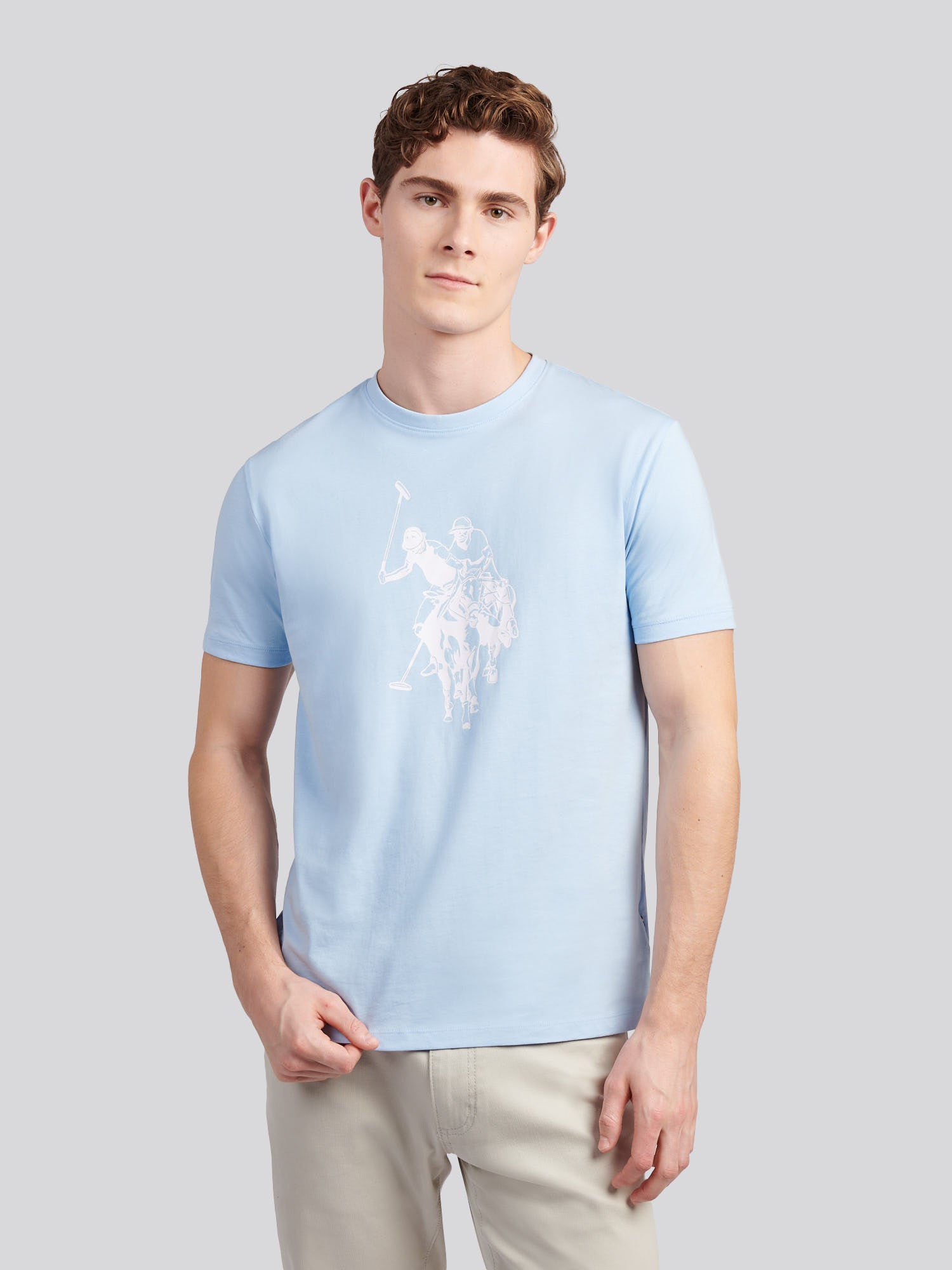 Mens Double Horsemen Graphic T-Shirt in Chambray Blue