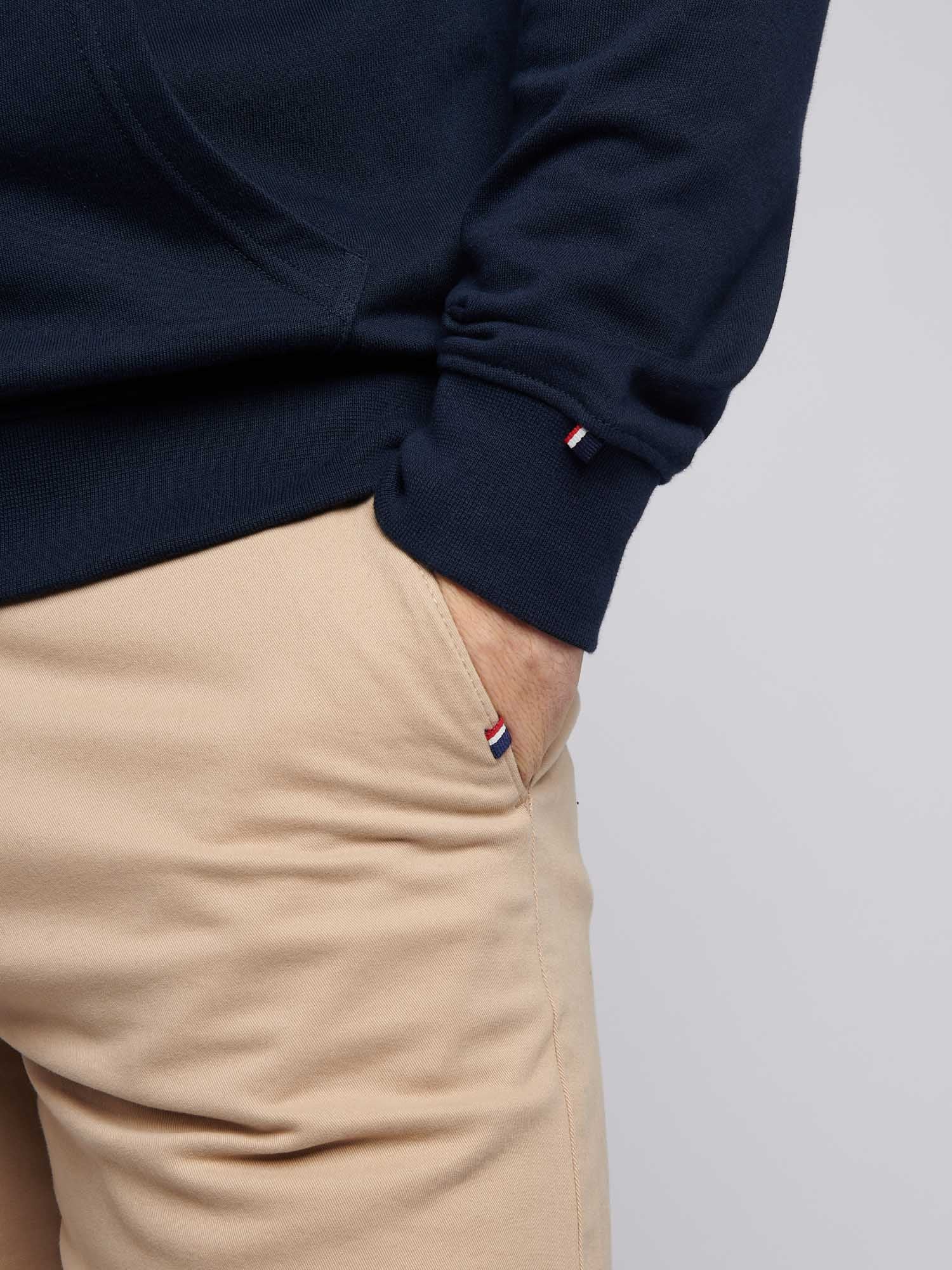 Mens Double Horsemen Loopback Hoodie in Dark Sapphire Navy / Haute Red DHM