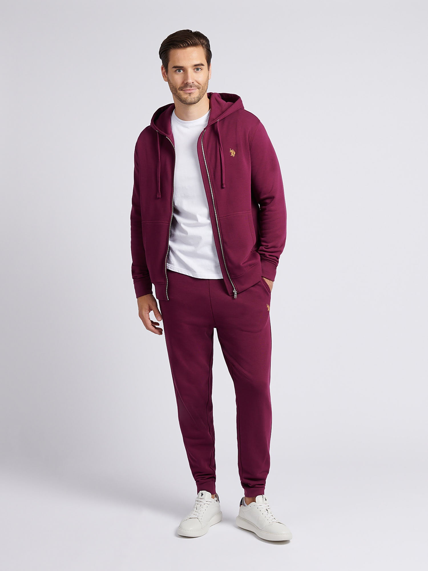 Mens Double Horsemen Loopback Zip Hoodie in Grape Wine