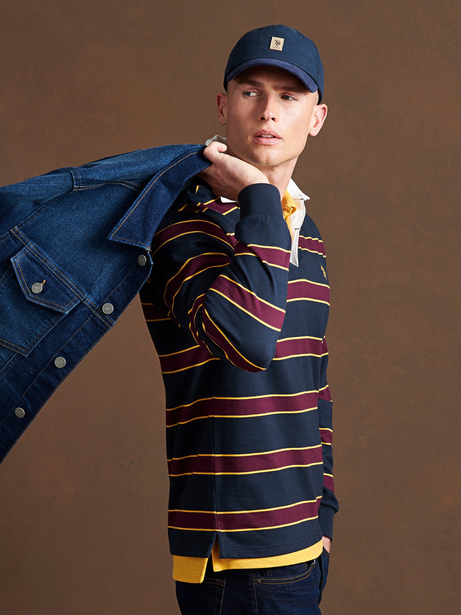 Mens Double Horsemen Stripe Rugby in Dark Sapphire Navy