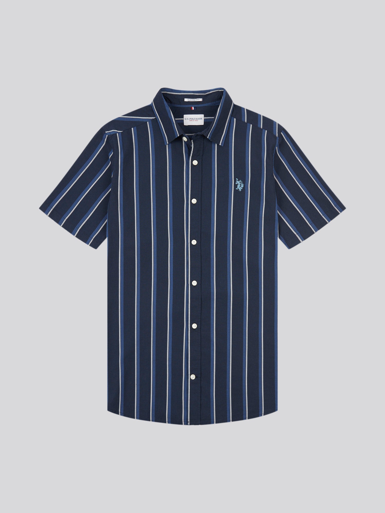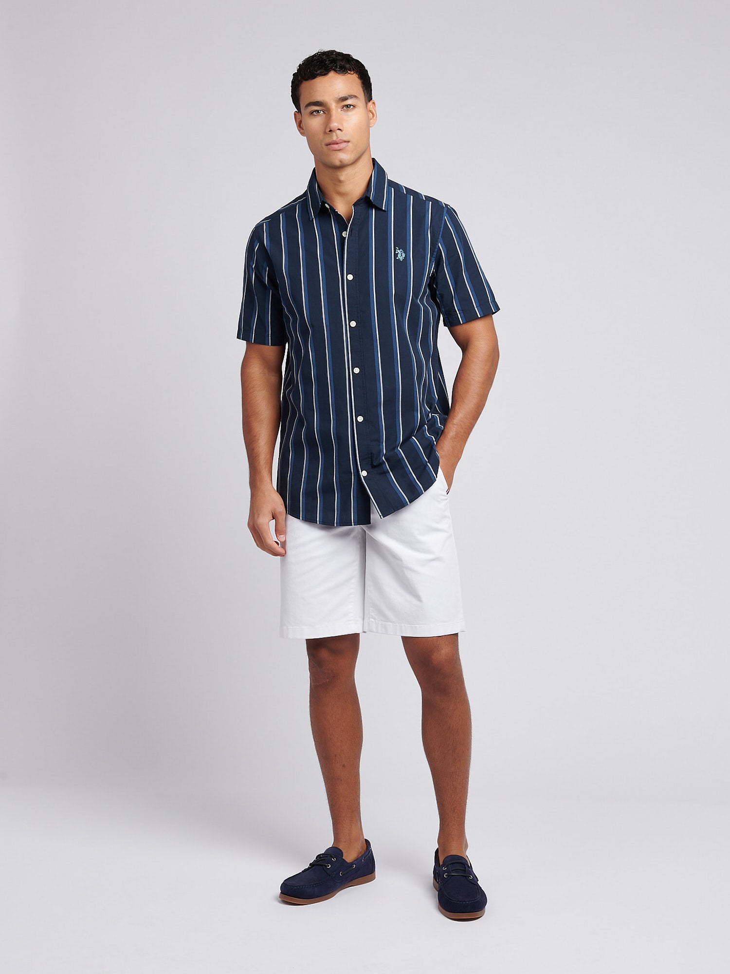 Elevate your smart-casual style with the U.S. Polo Assn. mens Double Horsemen Striped Short Sleeve Shirt. Crafted from soft, breathable cotton with a timeless striped design, this classic fit shirt is finished with the iconic Double Horsemen logo embroidered on the chest, bringing a touch of polo heritage to your wardrobe. Perfect for pairing with chinos or jeans for an effortless day-to-evening look.