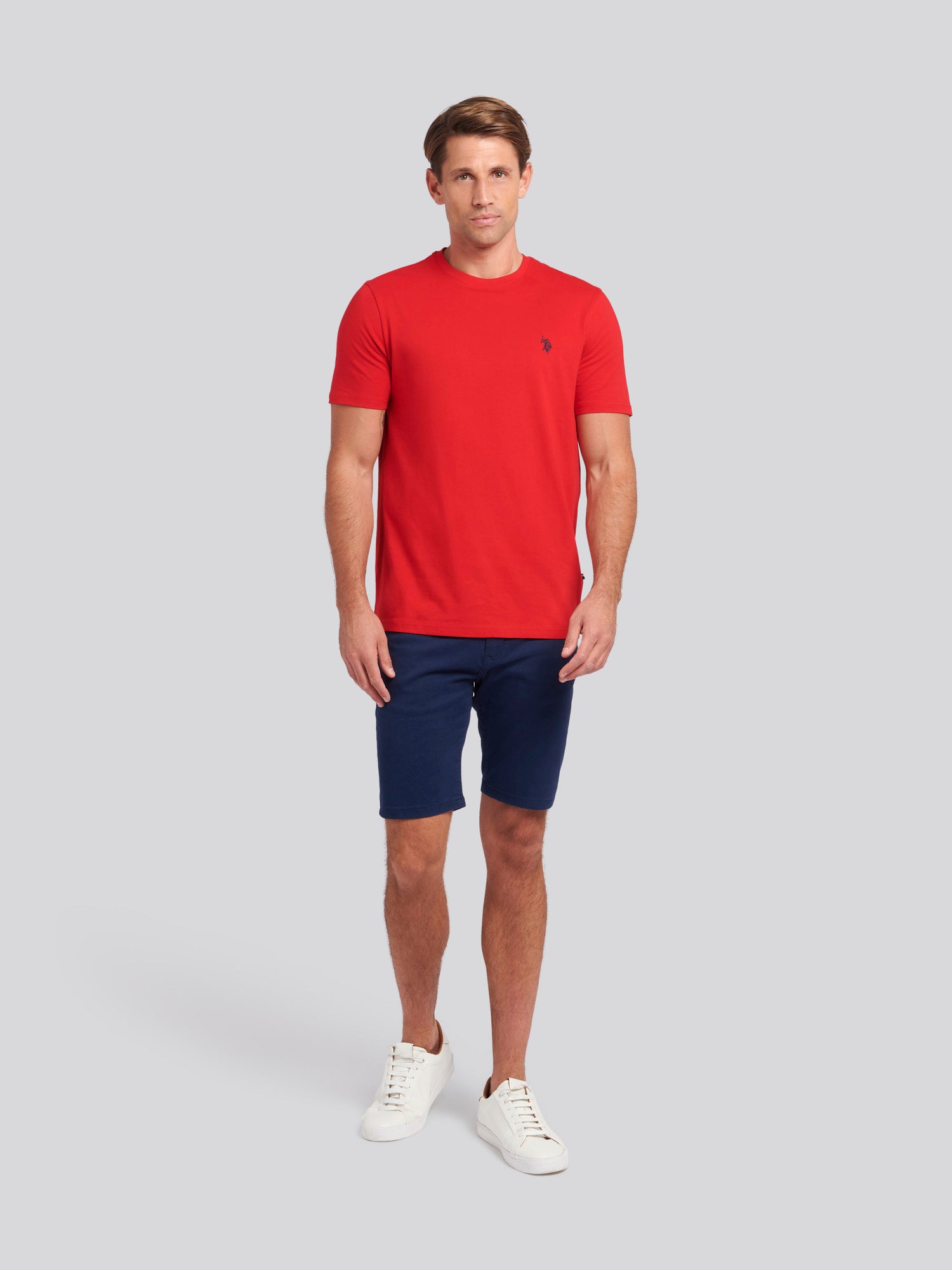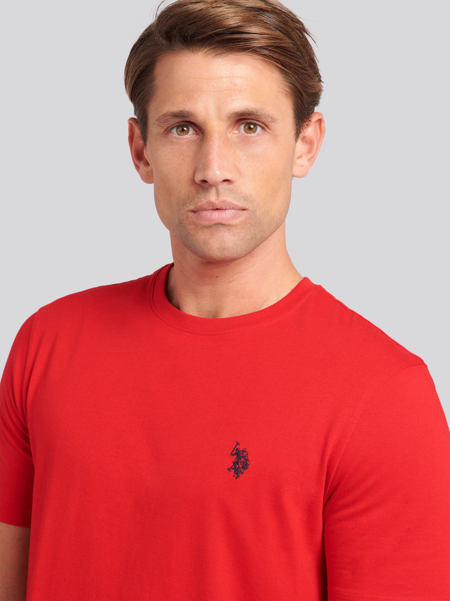 A wardrobe essential, the mens Double Horsemen T-Shirt by U.S. Polo Assn. offers comfort and style in one. Crafted from 100% cotton jersey, this classic piece works effortlessly as a standalone item or layered for versatile looks. The embroidered double Horsemen logo adds an authentic touch. Pair with jeans or chinos for a timeless outfit.