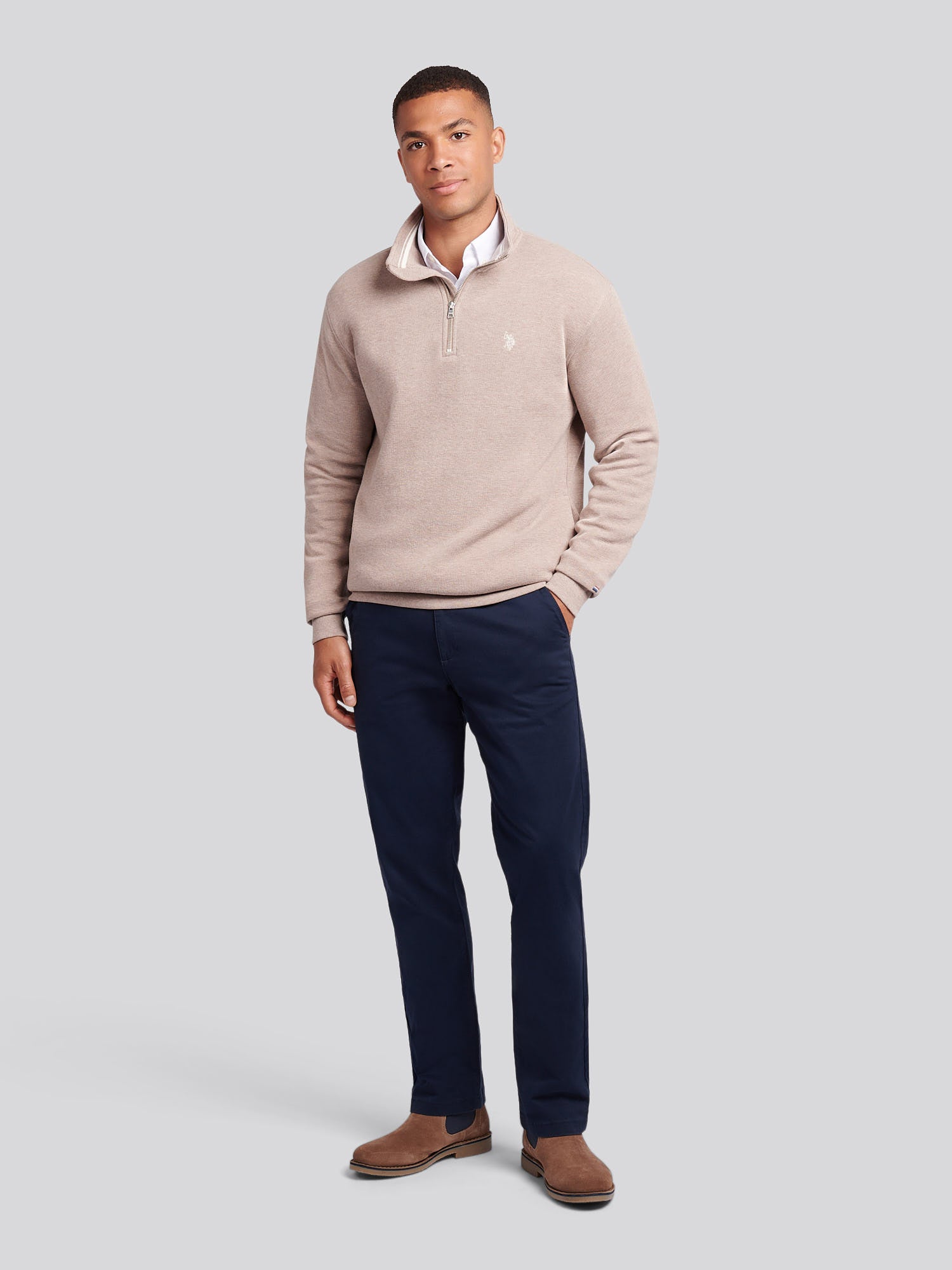Designed for refined off-duty moments, the U.S. Polo Assn. French Rib 1/4 Zip Funnel strikes the perfect balance between laid-back style and practical design. Finished with signature embroidered details and a premium metal zip puller, it’s a versatile piece that transitions effortlessly from city errands to countryside strolls. Wear it over a button-down shirt or under a coat for added warmth and polish.