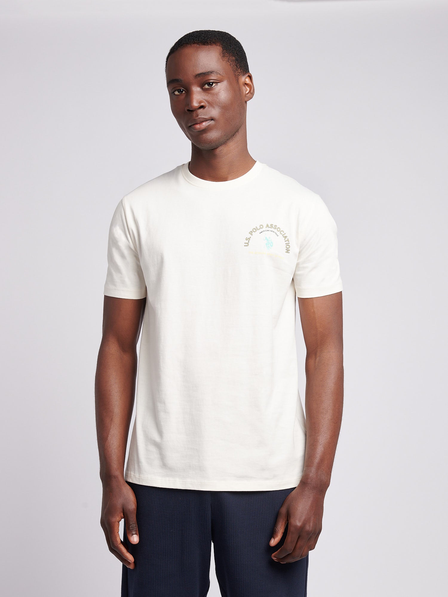 Mens Front/Back Print Graphic T-Shirt in Whisper White