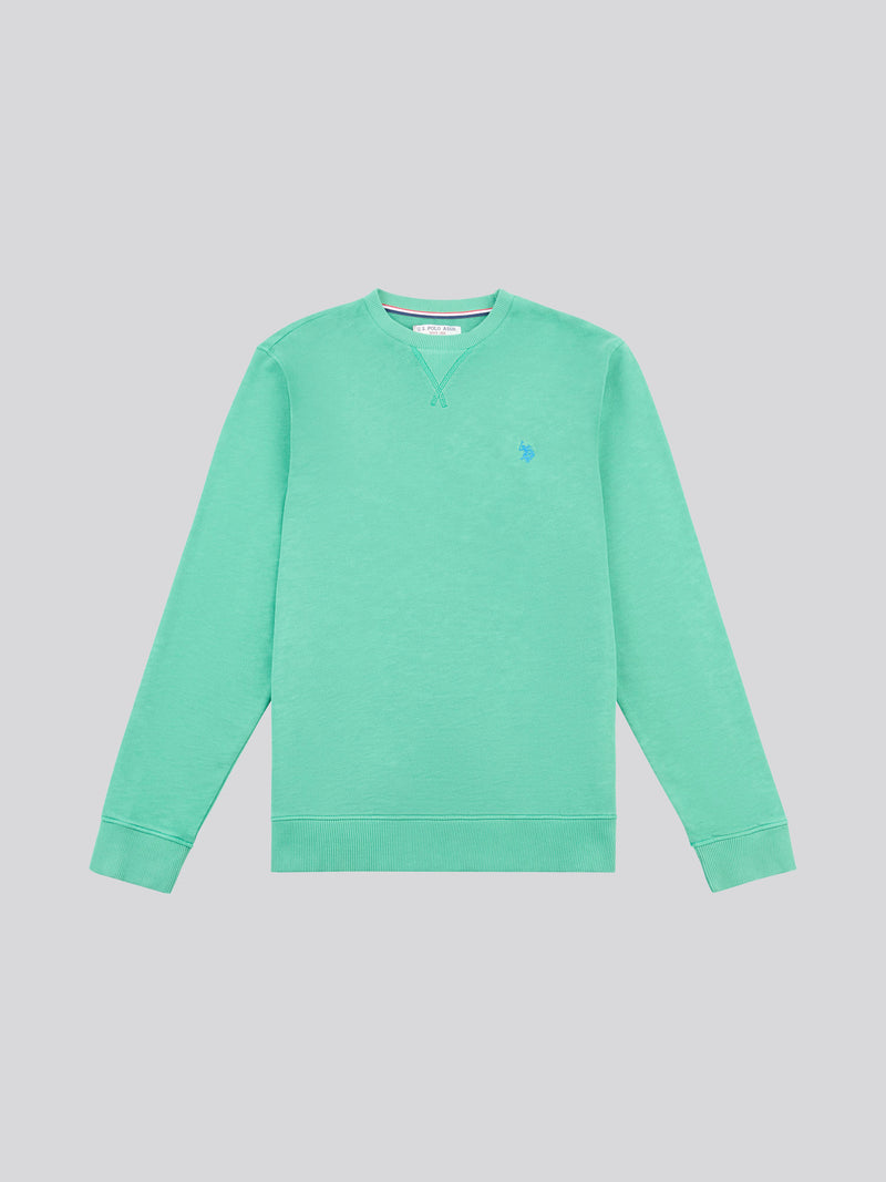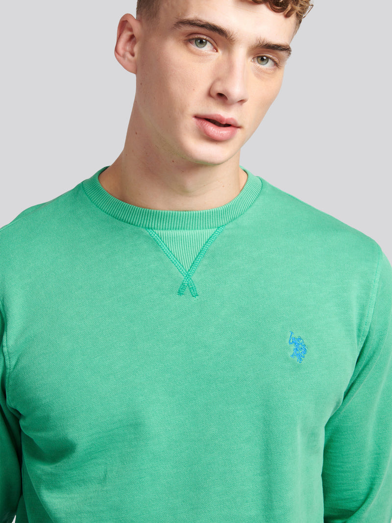 Mens Garment Dye Crew Neck Sweatshirt in Golf Green
