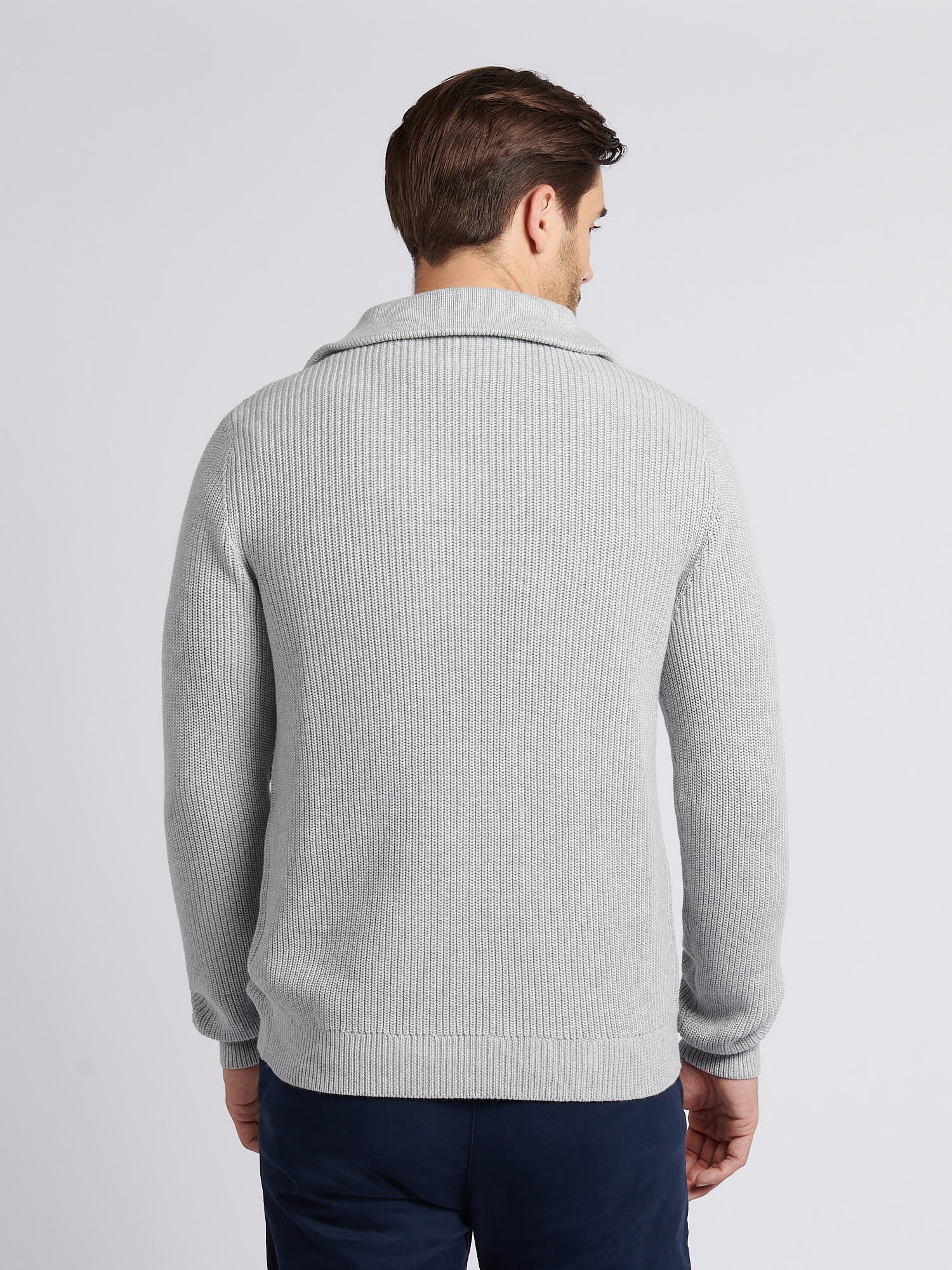 Mens Half Cardigan Stitch Knit Funnel in Mid Grey Marl