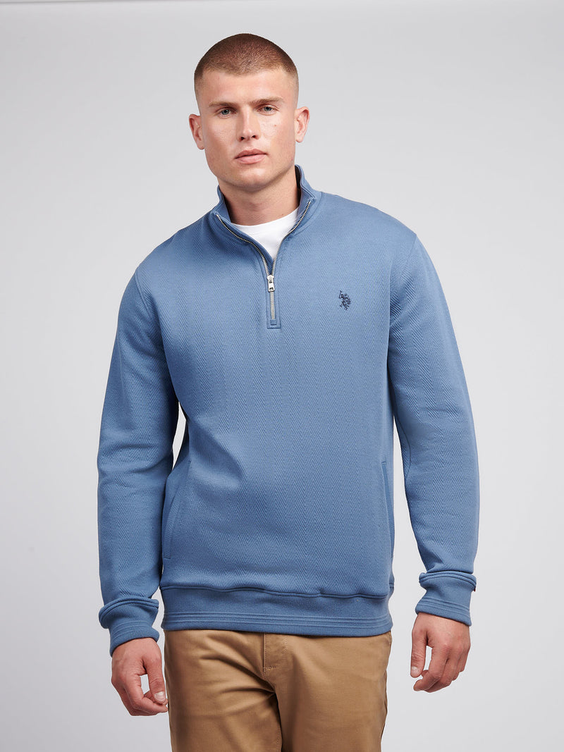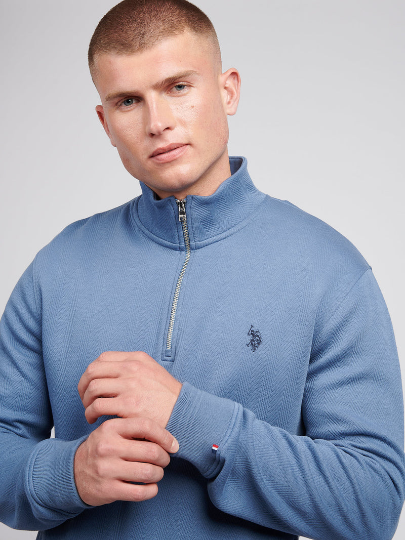 Men's Herringbone ¼ Zip Sweatshirt in Blue Horizon