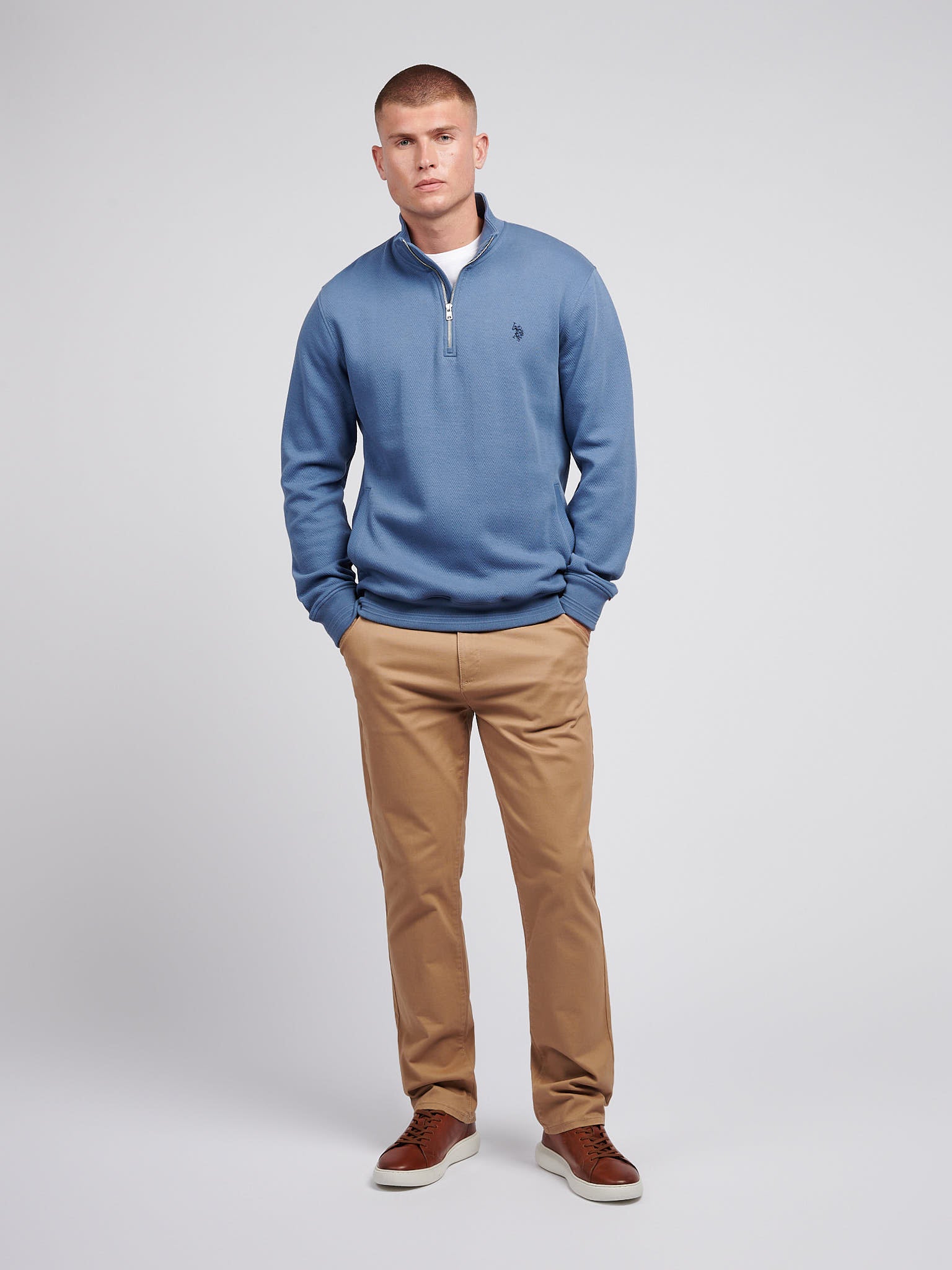 Add comfort to a smart layered look with the U.S. Polo Assn. Mens Herringbone 1/4 Zip Sweatshirt.