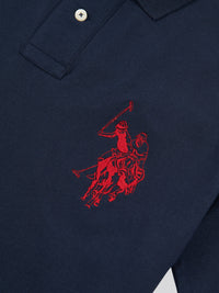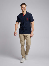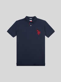 Mens Large Player Pique Polo Shirt in Dark Sapphire Navy / Haute Red DHM