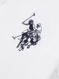 Mens Large Player Pique Polo Shirt in White / Dark Sapphire Navy DHM