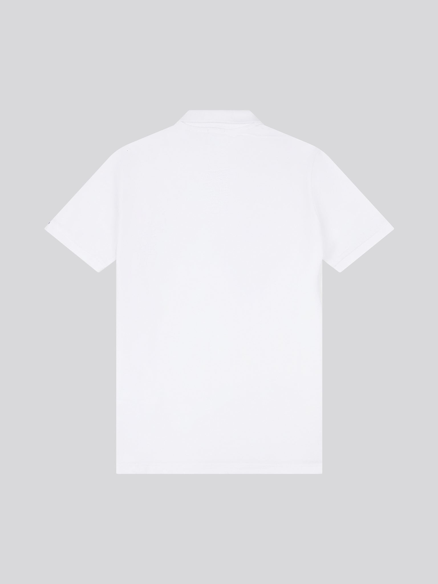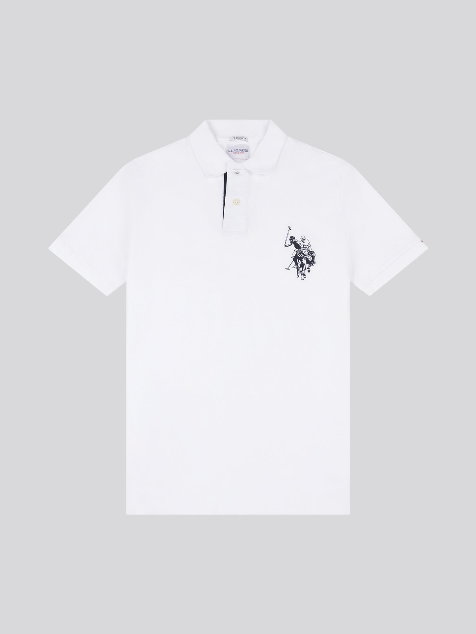 Mens Large Player Pique Polo Shirt in White / Dark Sapphire Navy DHM