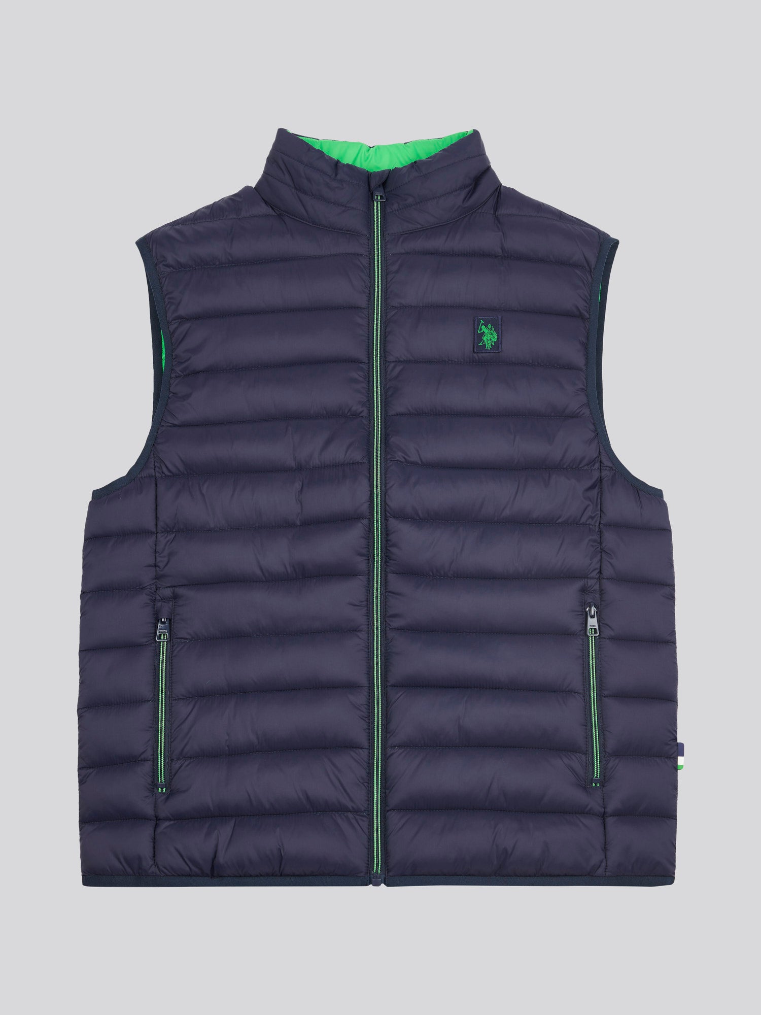 Eco-friendly fashion never looked so good! From the Life Collection, the U.S. Polo Assn. Mens Bound Quilted Gilet combines sustainable materials with practical style. Crafted from recycled polyester with a water-resistant finish, it’s perfect for layering or wearing solo as a lightweight top layer. The dedicated green accents and signature Life branding showcase U.S. Polo Assn.'s commitment to environmental responsibility.