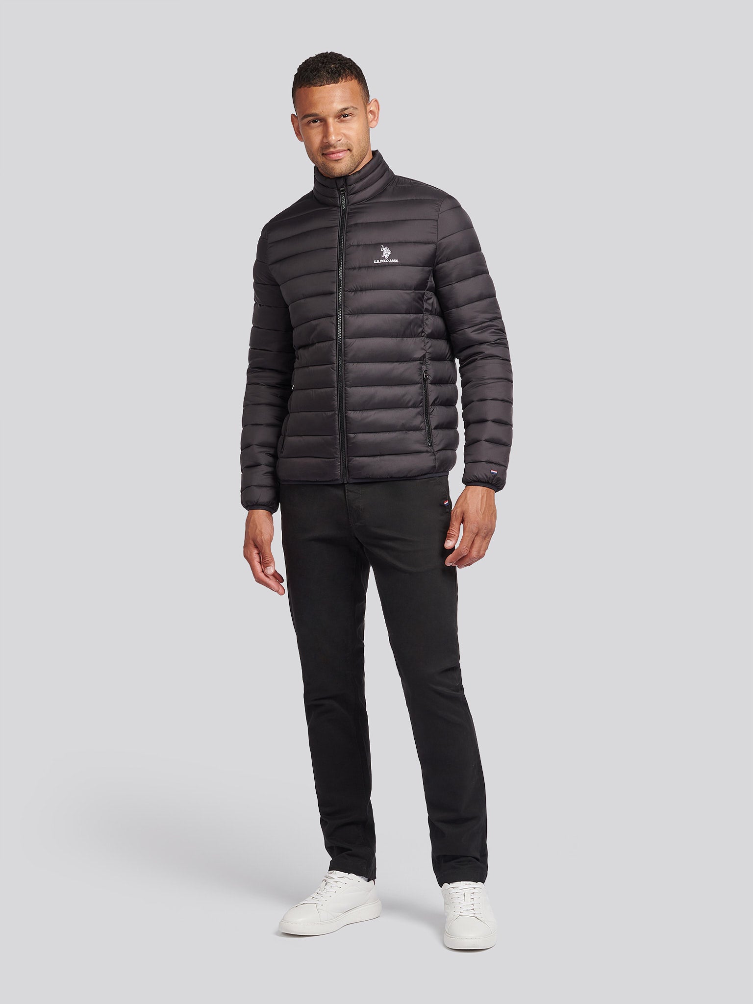 Effortlessly sophisticated, this U.S. Polo Assn. Mens Lightweight Bound Quilted Jacket is designed for both warmth and style. With a sleek quilted finish and elastic binding for a refined fit, this versatile layer is perfect for cool weather. Pair with chinos for a smart look or jeans for a laid-back appeal.