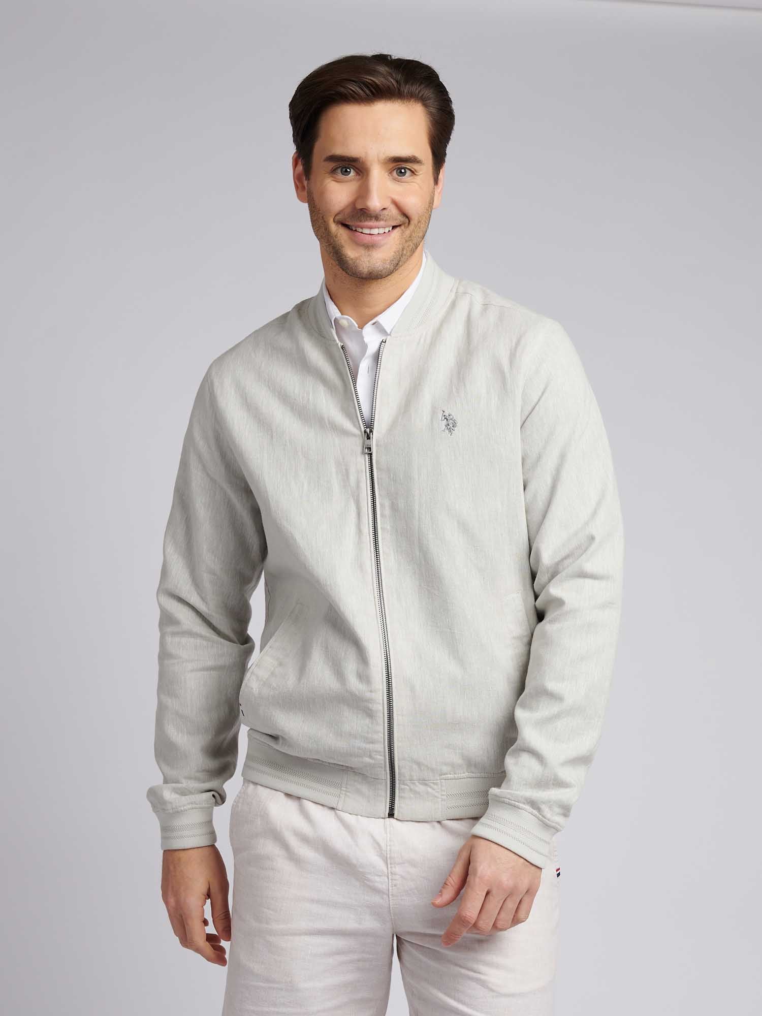 Effortlessly refined, the U.S. Polo Assn. mens Linen Blend Classic Bomber offers lightweight comfort with timeless appeal. Crafted in a breathable linen-cotton blend, it’s enhanced by a water-resistant finish for versatile, smart-casual wear.
