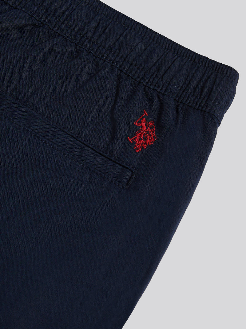 Mens Linen Blend Deck Shorts in Dark Sapphire Navy / Haute Red DHM