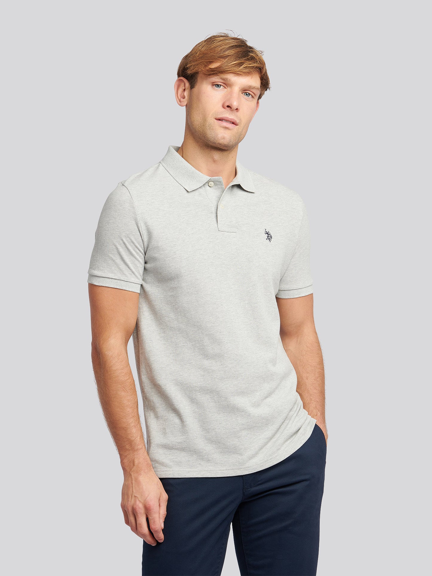 Mens Double Horsemen Polo Shirt in Mid Grey Marl
