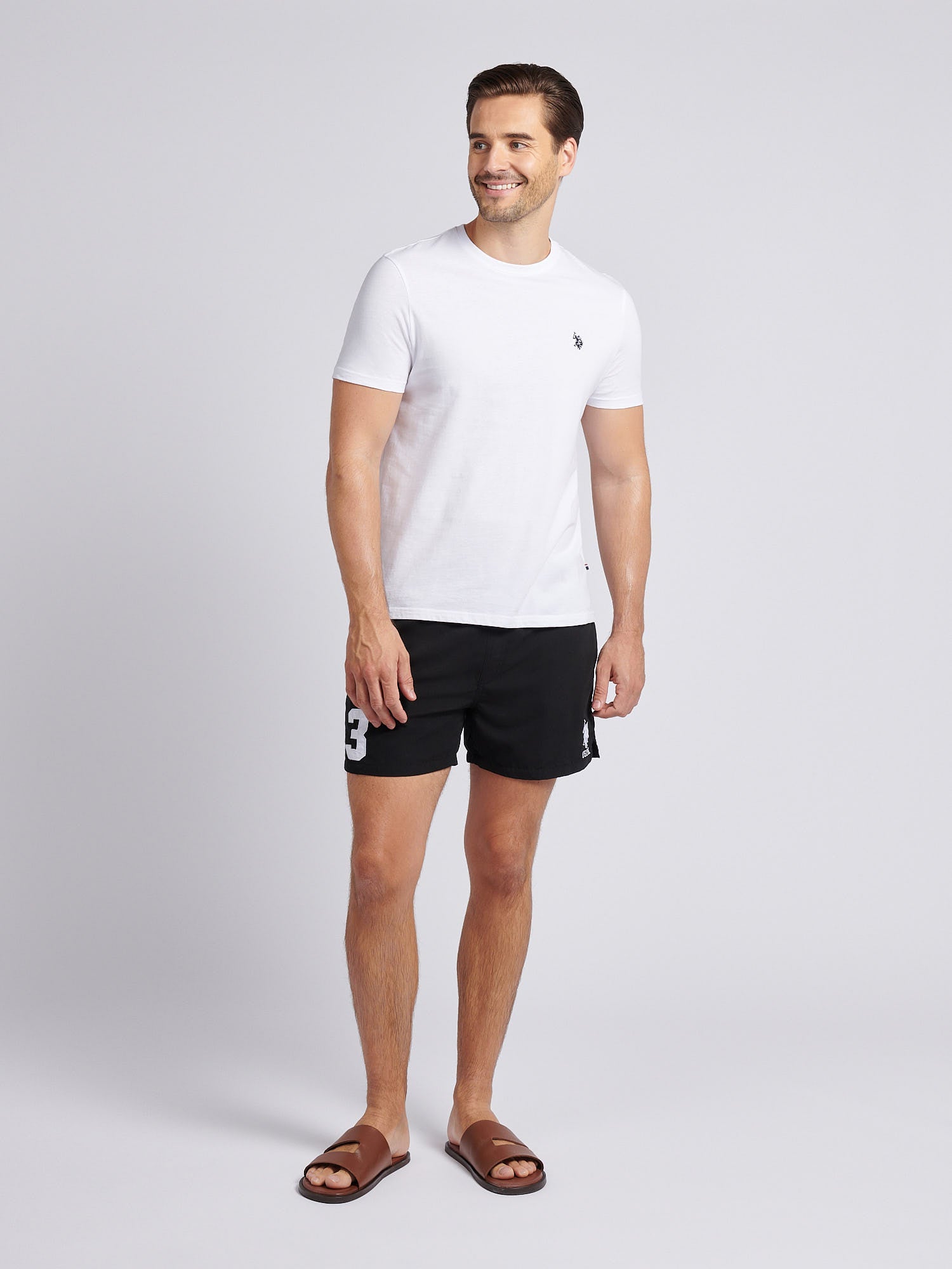 Celebrate iconic style with the U.S. Polo Assn. Mens Player 3 Swim Shorts, crafted with quick-dry fabric for lasting comfort. Pair with a classic tee for a relaxed summer look.