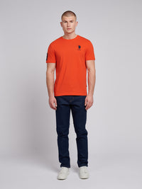 This U.S. Polo Assn. mens Player 3 T-Shirt pays homage to the strongest player on a polo team. Crafted from 100% cotton for comfort and breathability, it features the numeral 3 embroidered on the sleeve and the signature double Horsemen logo on the chest. Pair with jeans for an easy, stylish look.