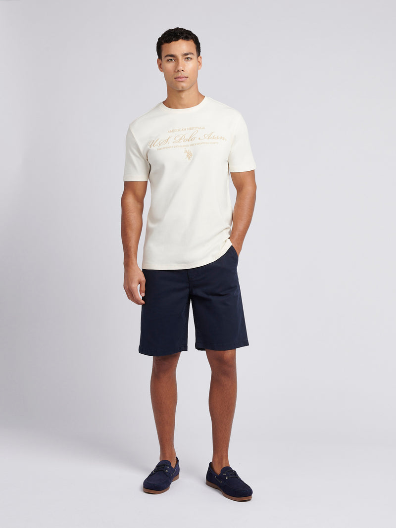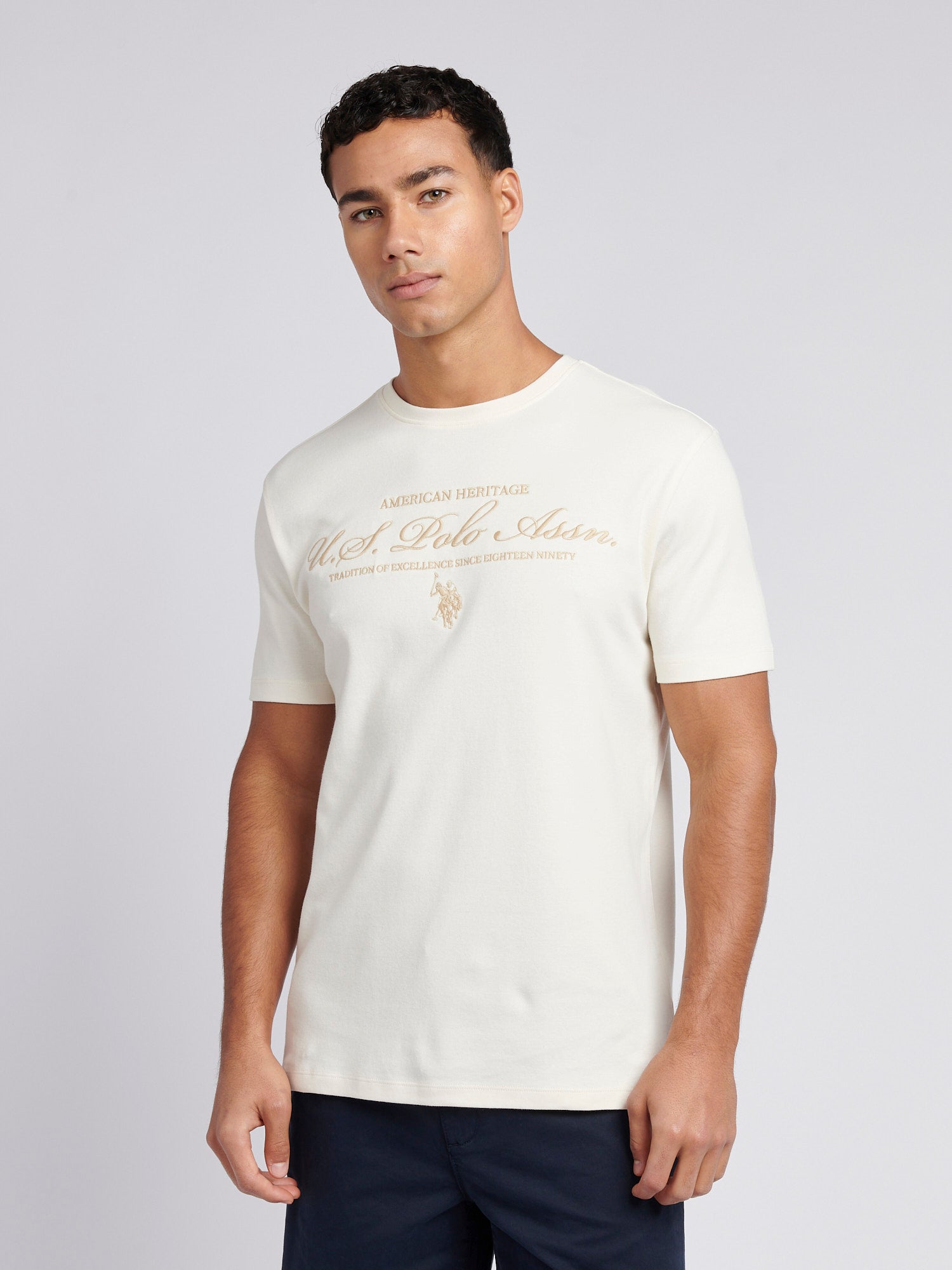 Make a statement with the mens Premium Graphic T-Shirt by U.S. Polo Assn., combining classic style with standout detailing. Crafted from soft, high-quality cotton, this tee showcases a bold embroidered graphic on the chest, adding a touch of elegance to casual wear. Pair with jeans or chinos for an elevated off-duty look.