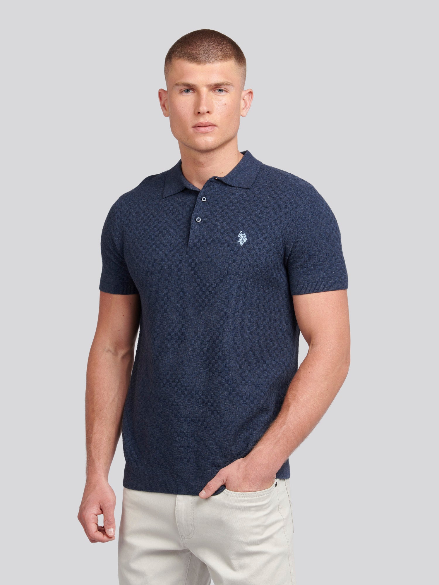 Mens Regular Fit Texture Knit Polo Shirt in Dark Sapphire Navy Marl