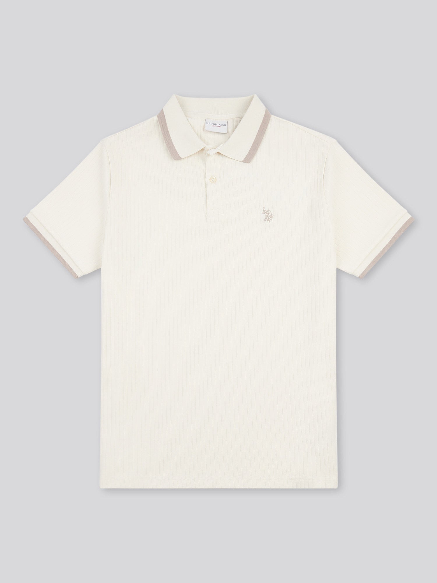 With a refined ribbed finish and modern detailing, the U.S. Polo Assn. Mens Rib Texture Polo Shirt is a sophisticated take on a casual staple. Designed to elevate your everyday, it pairs effortlessly with relaxed tailoring or jeans for a confident, clean-cut look.