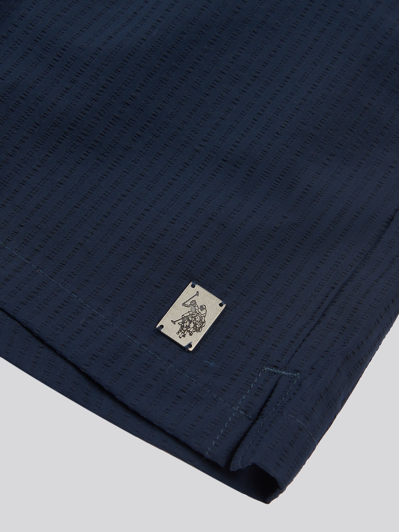 Mens Seersucker Swim Short in Dark Sapphire Navy