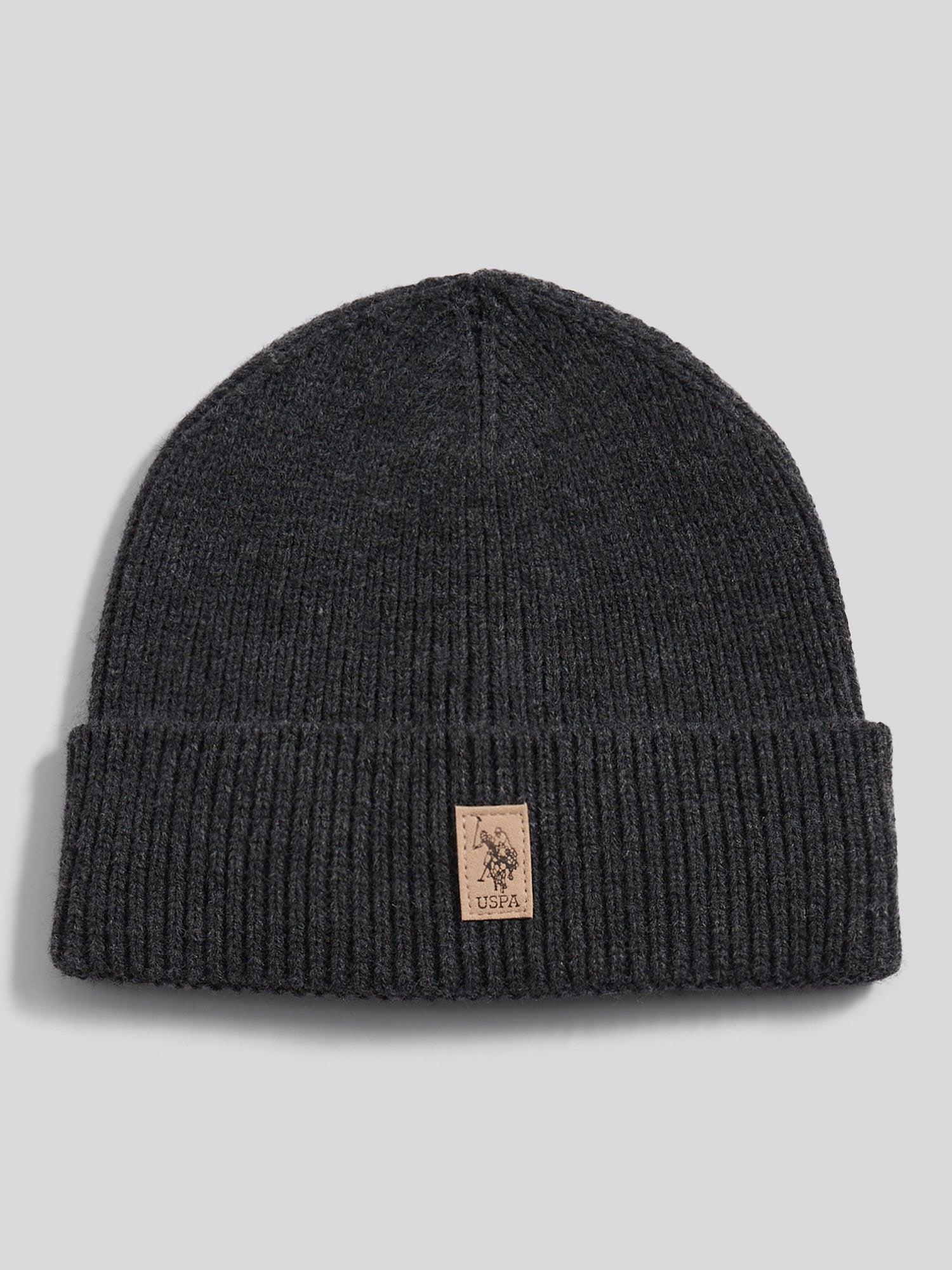 Mens Signature Double Horsemen Knit Beanie in Charcoal Marl