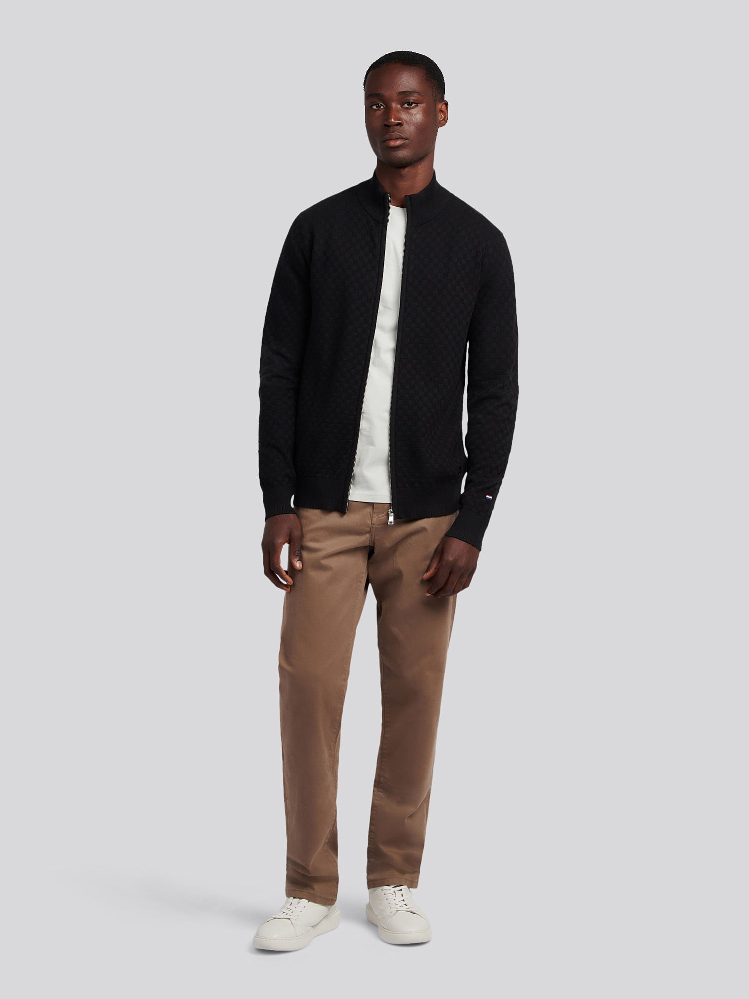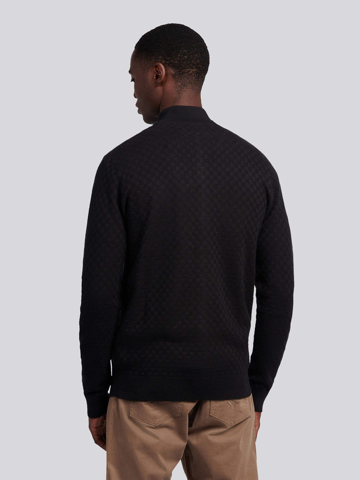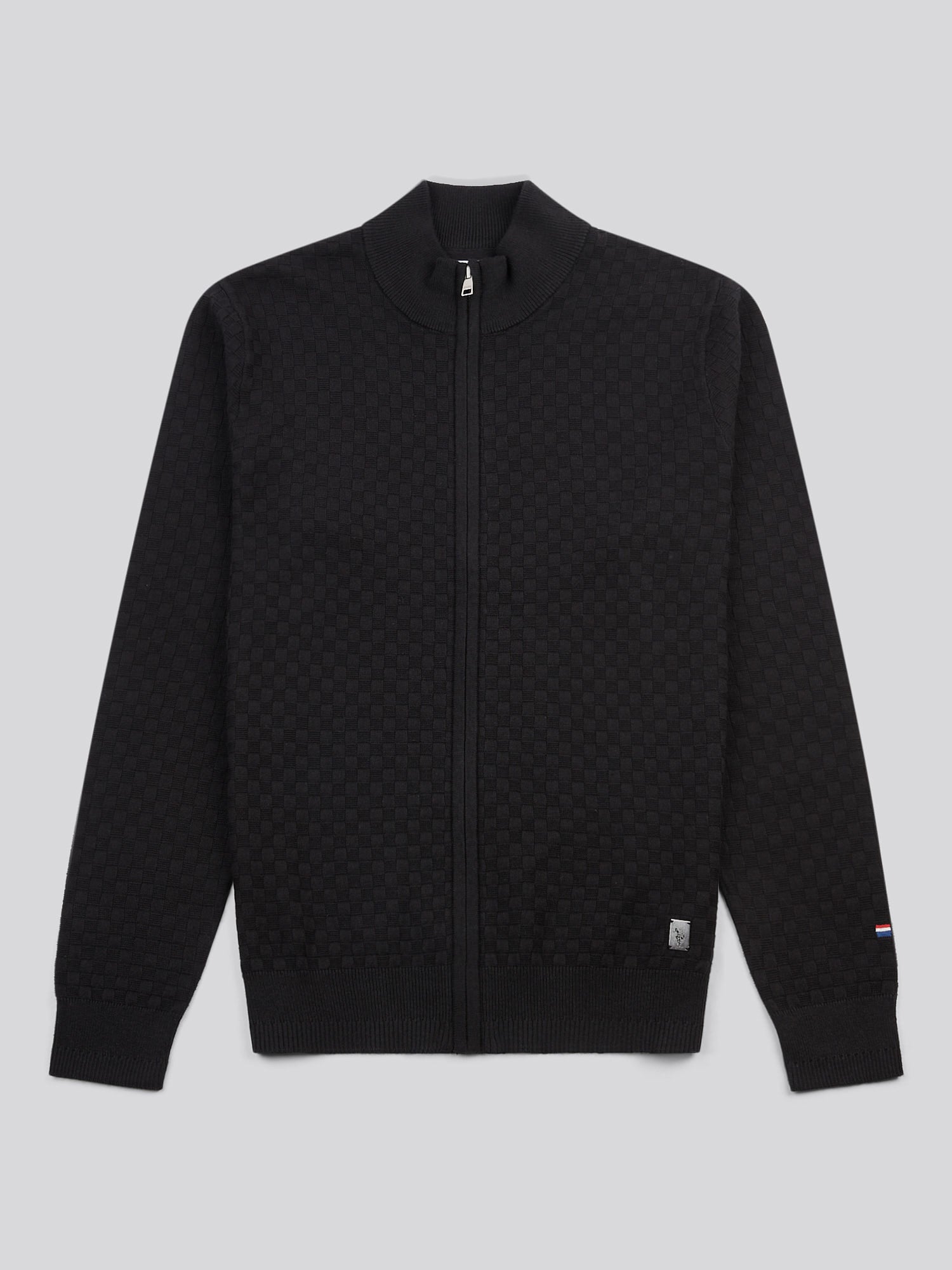 Mens Smart Checkerboard Zip Through Funnel in Black