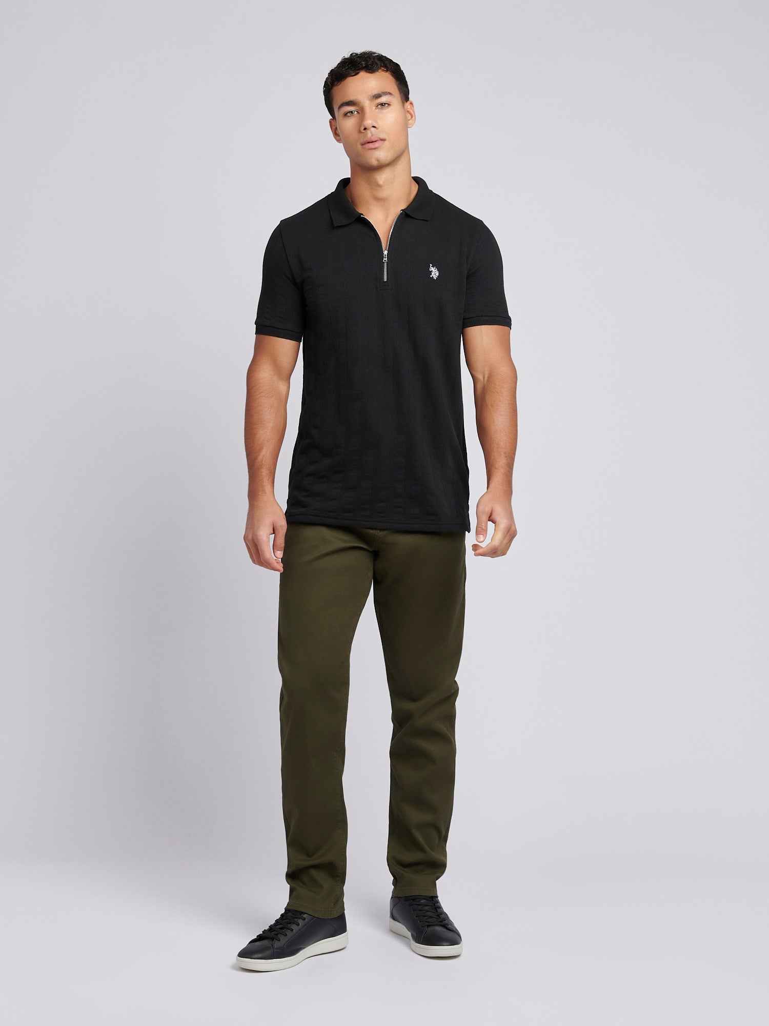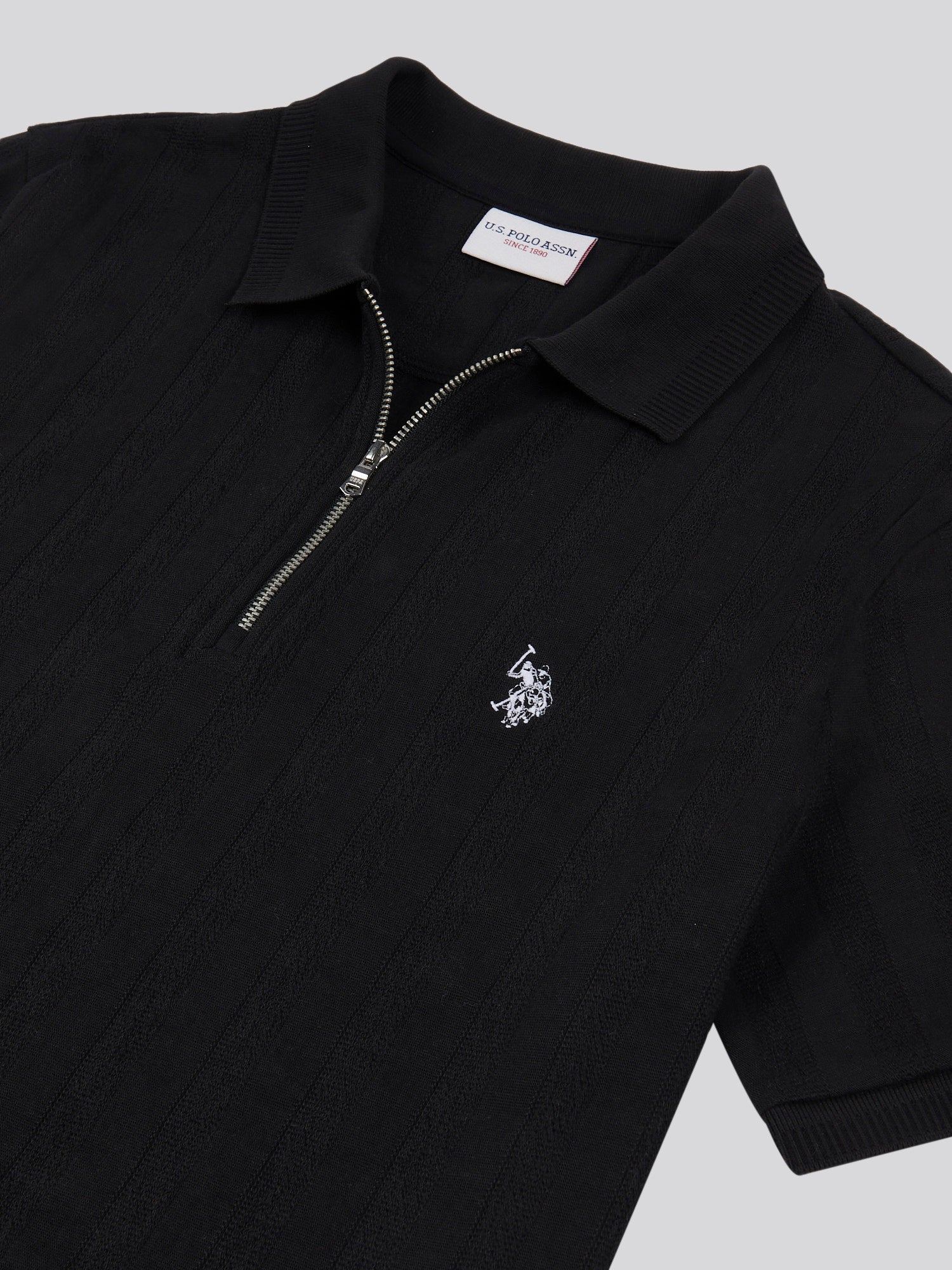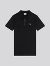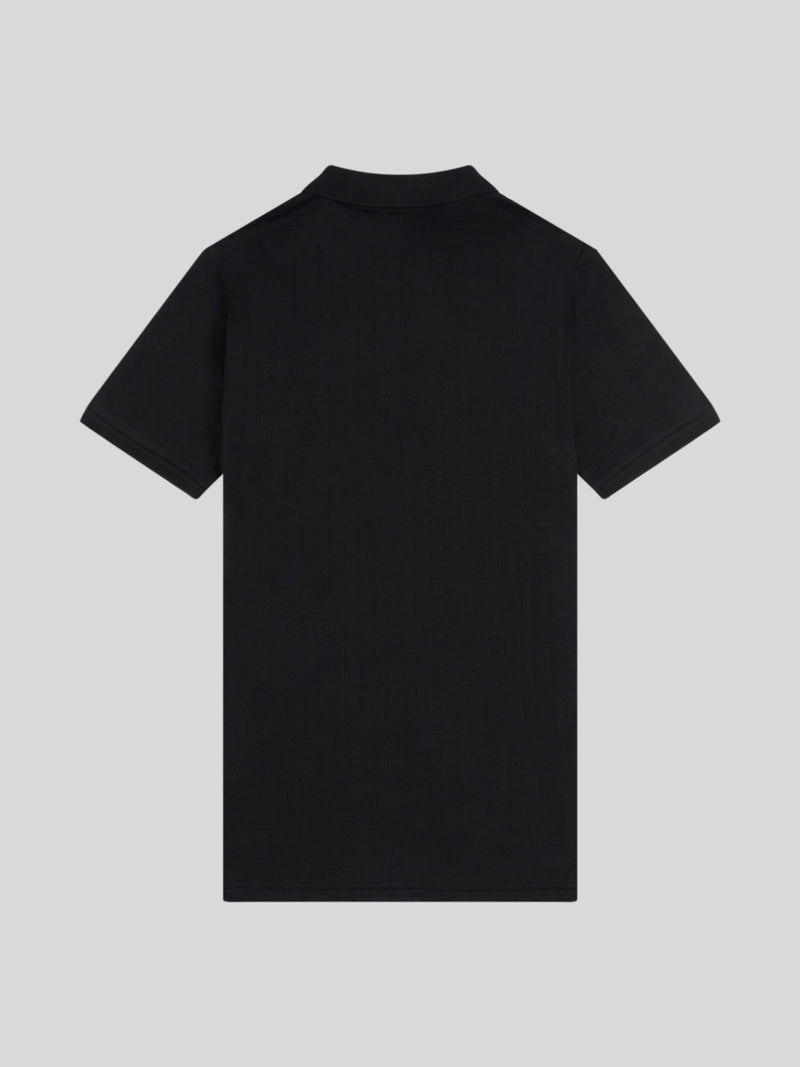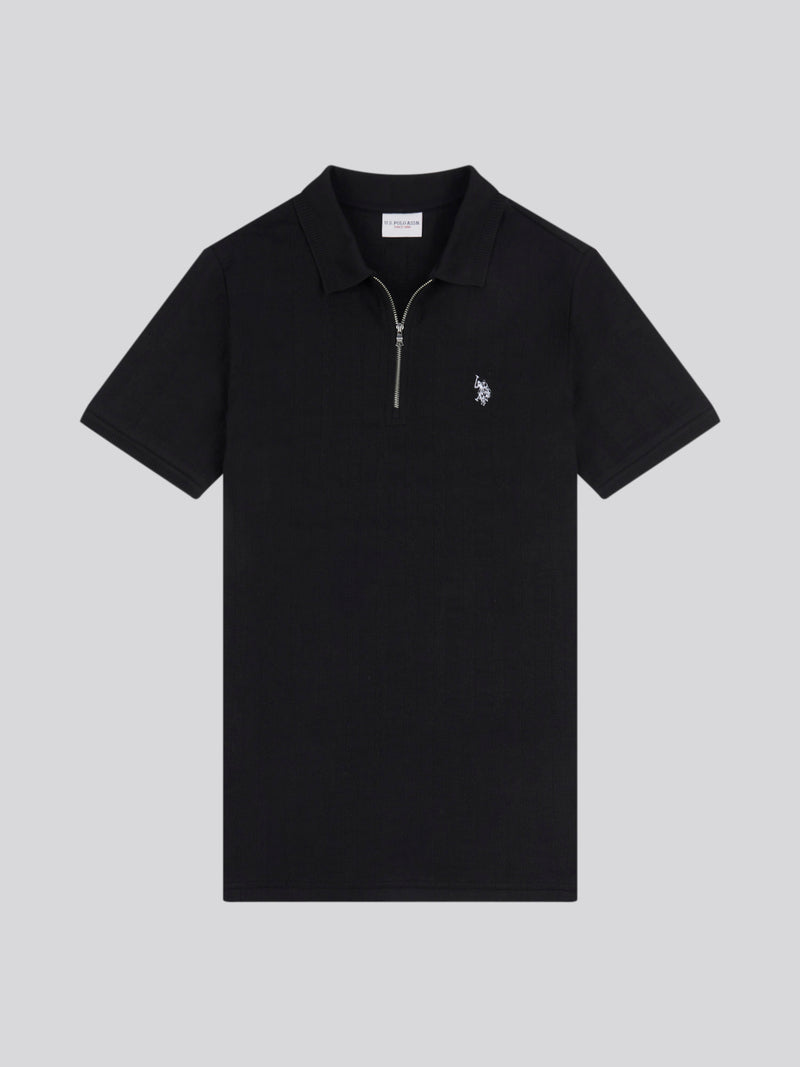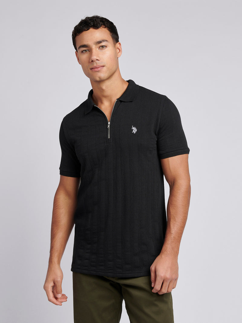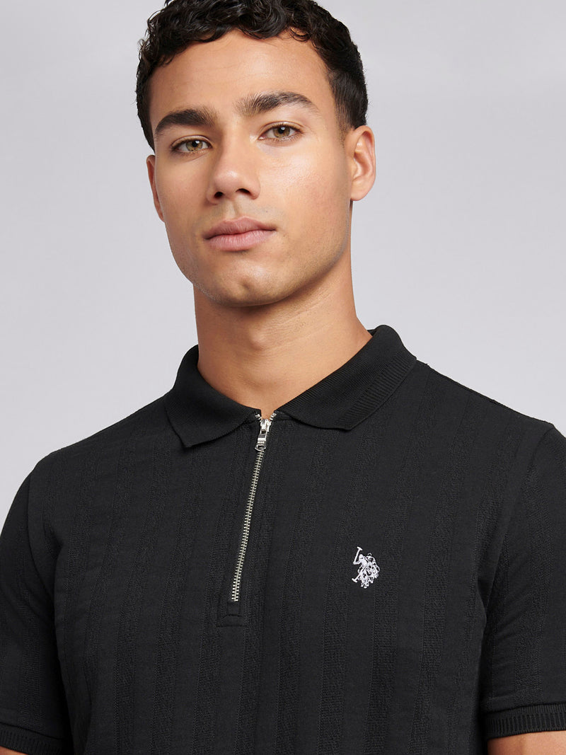Mens Stripe Textured Zip Polo Shirt in Black Bright White DHM