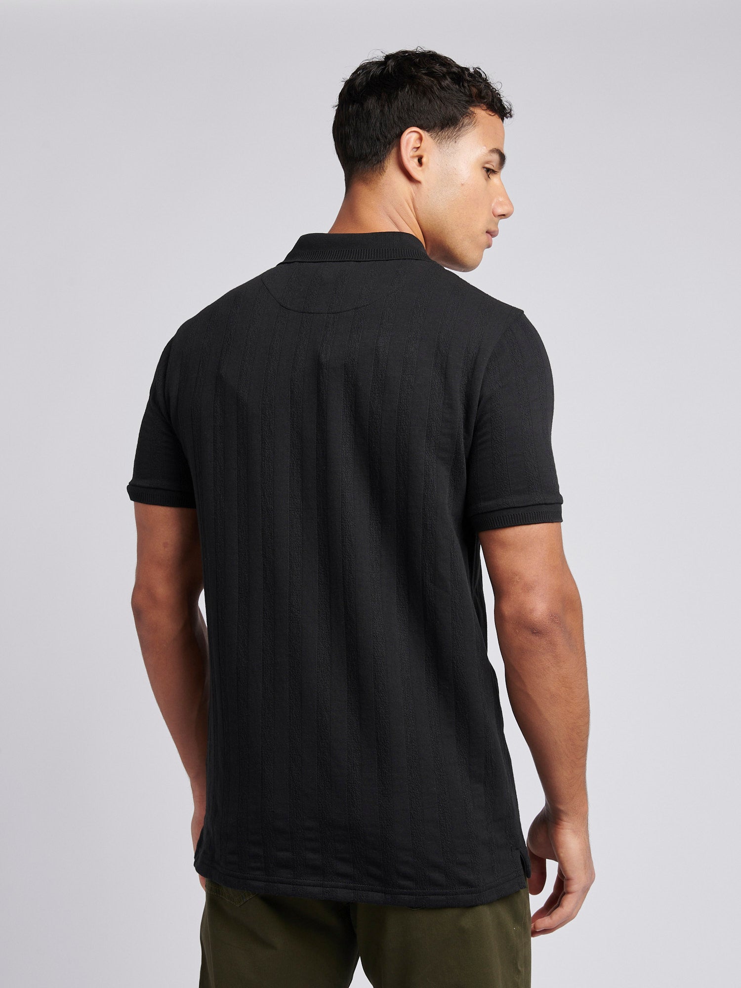 Elevate your smart-casual wardrobe with the mens Stripe Textured Zip Polo Shirt, a modern piece that merges timeless style with contemporary detailing. Crafted from a textured fabric with vertical stripes, this polo brings a touch of sophistication and depth to any look. Pair with chinos and loafers for an effortlessly refined style, or wear with jeans and trainers for a versatile, polished look.