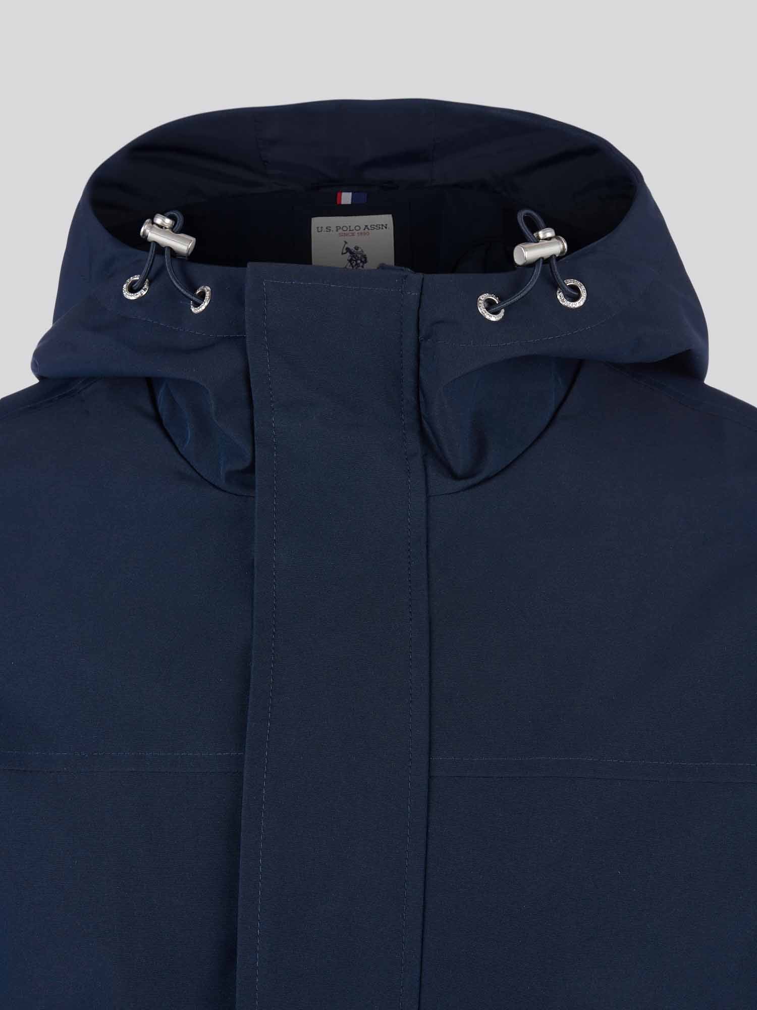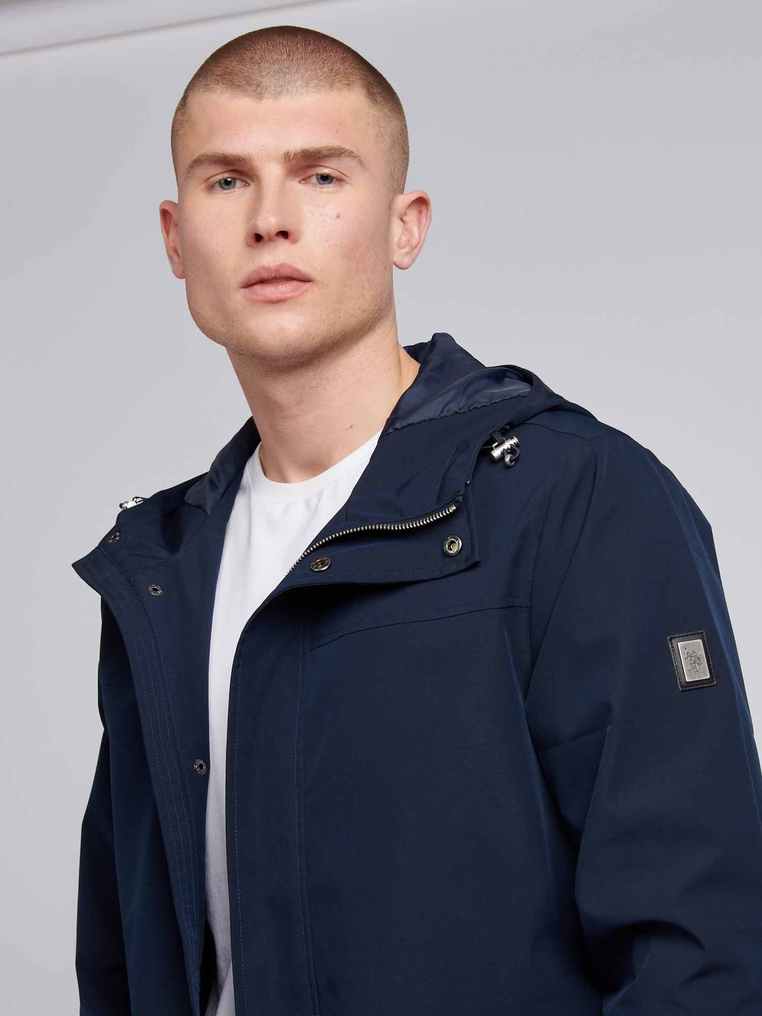 Designed for unpredictable weather, the U.S. Polo Assn. mens Technical Summer Rain Mac provides a sleek layer of protection. This longline jacket features durable water-resistant coating, adjustable cuff details, and a three-panel hood to keep you covered on rainy days. Pair with casual chinos or denim for a versatile, weather-ready look.
