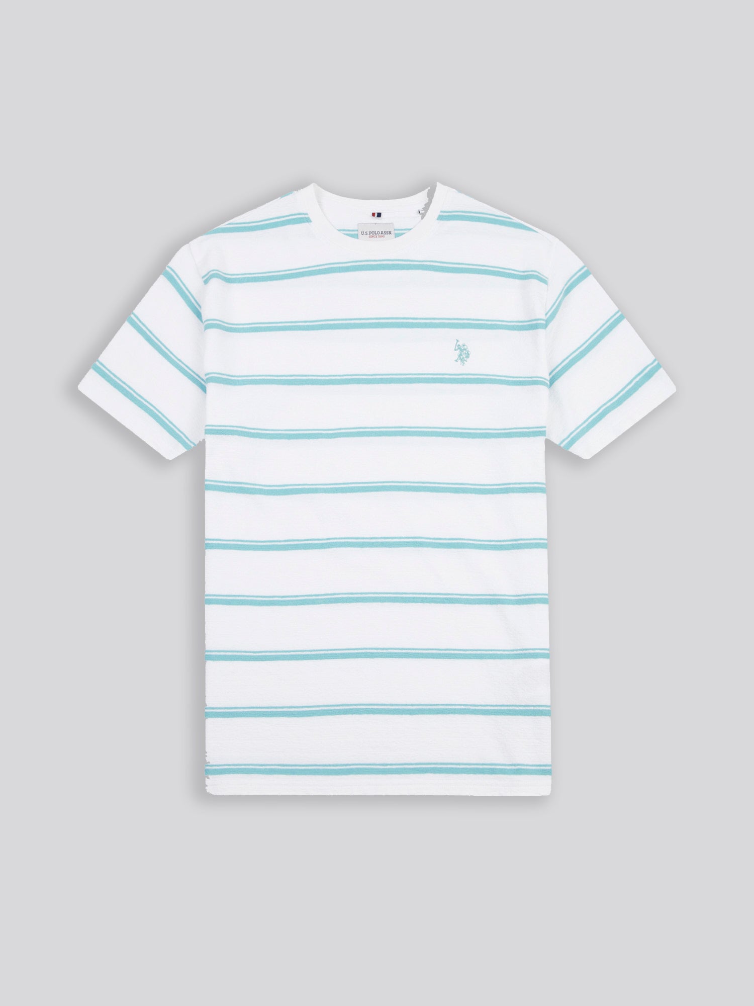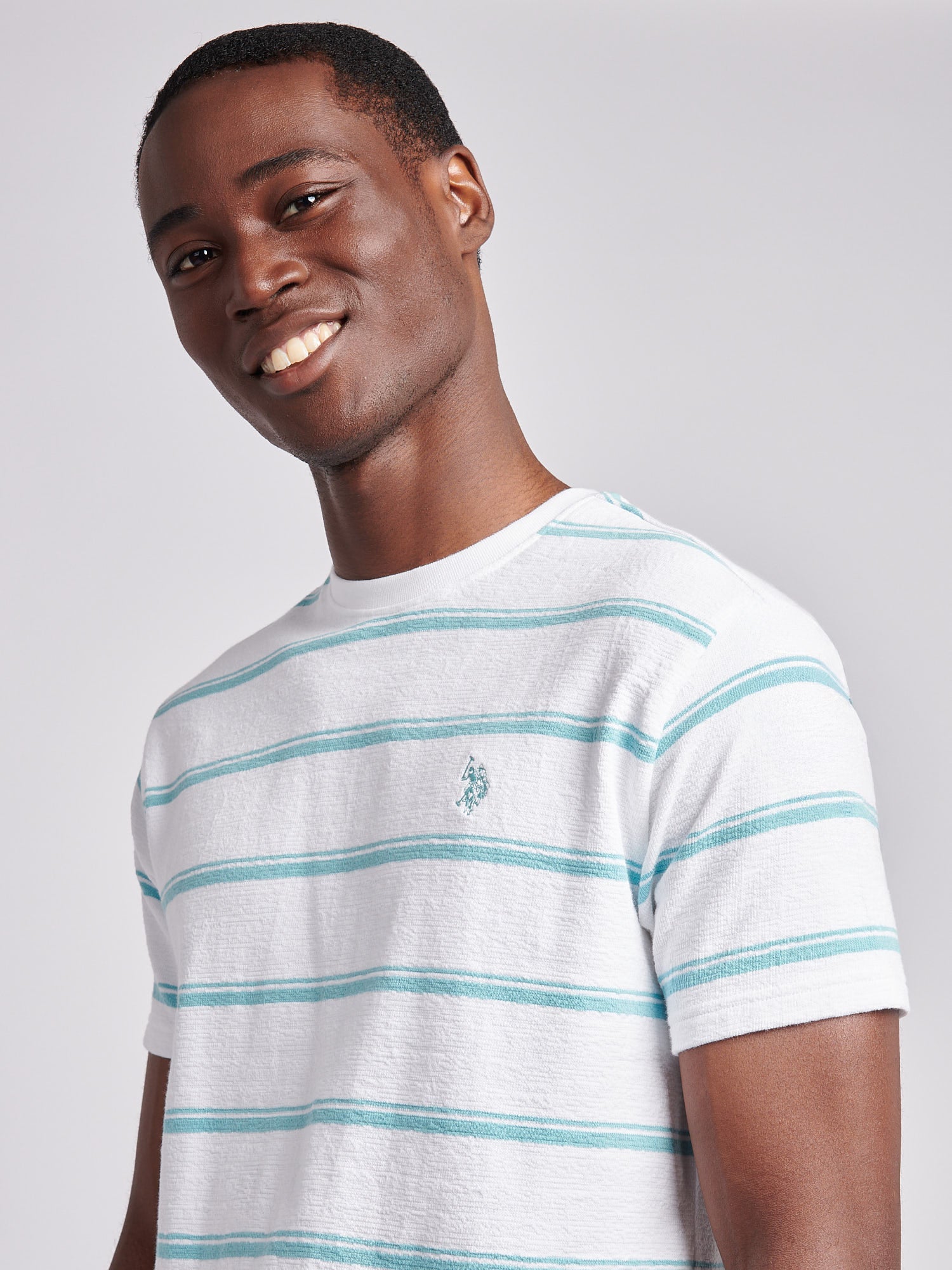 Step up your casual wardrobe with the U.S. Polo Assn. Mens Terry Stripe T-Shirt. With engineered stripes and heritage detailing, this elevated essential delivers laid-back refinement. Pair it with chinos or neutral shorts for a fresh, confident look that works all weekend long.