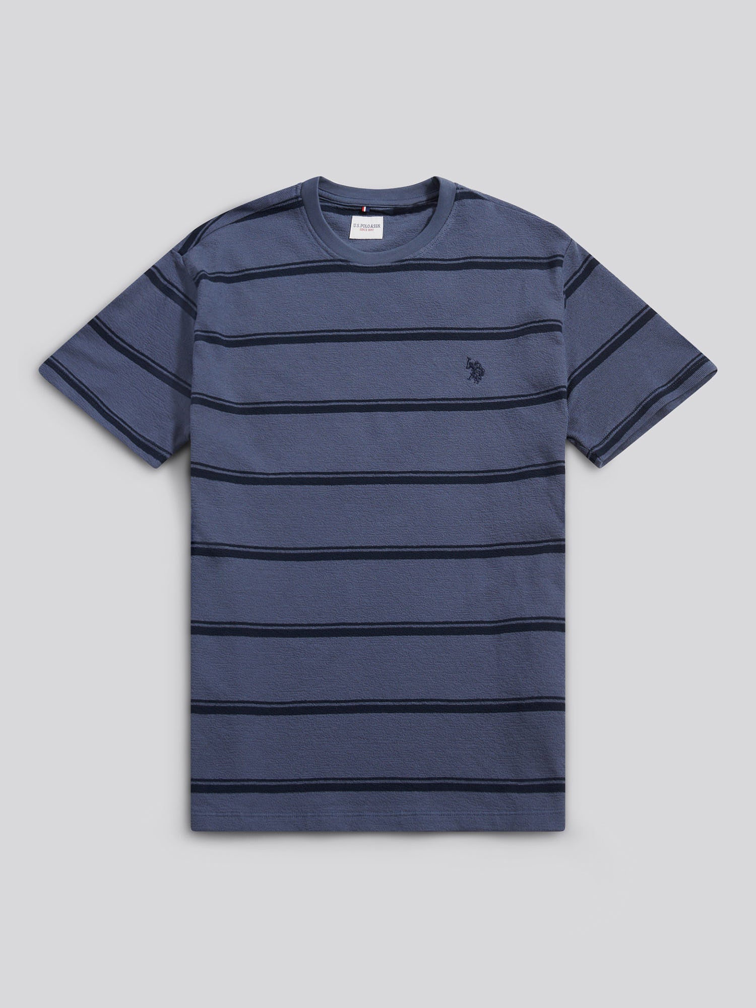 Mens Terry Stripe T-Shirt in Vintage Indigo