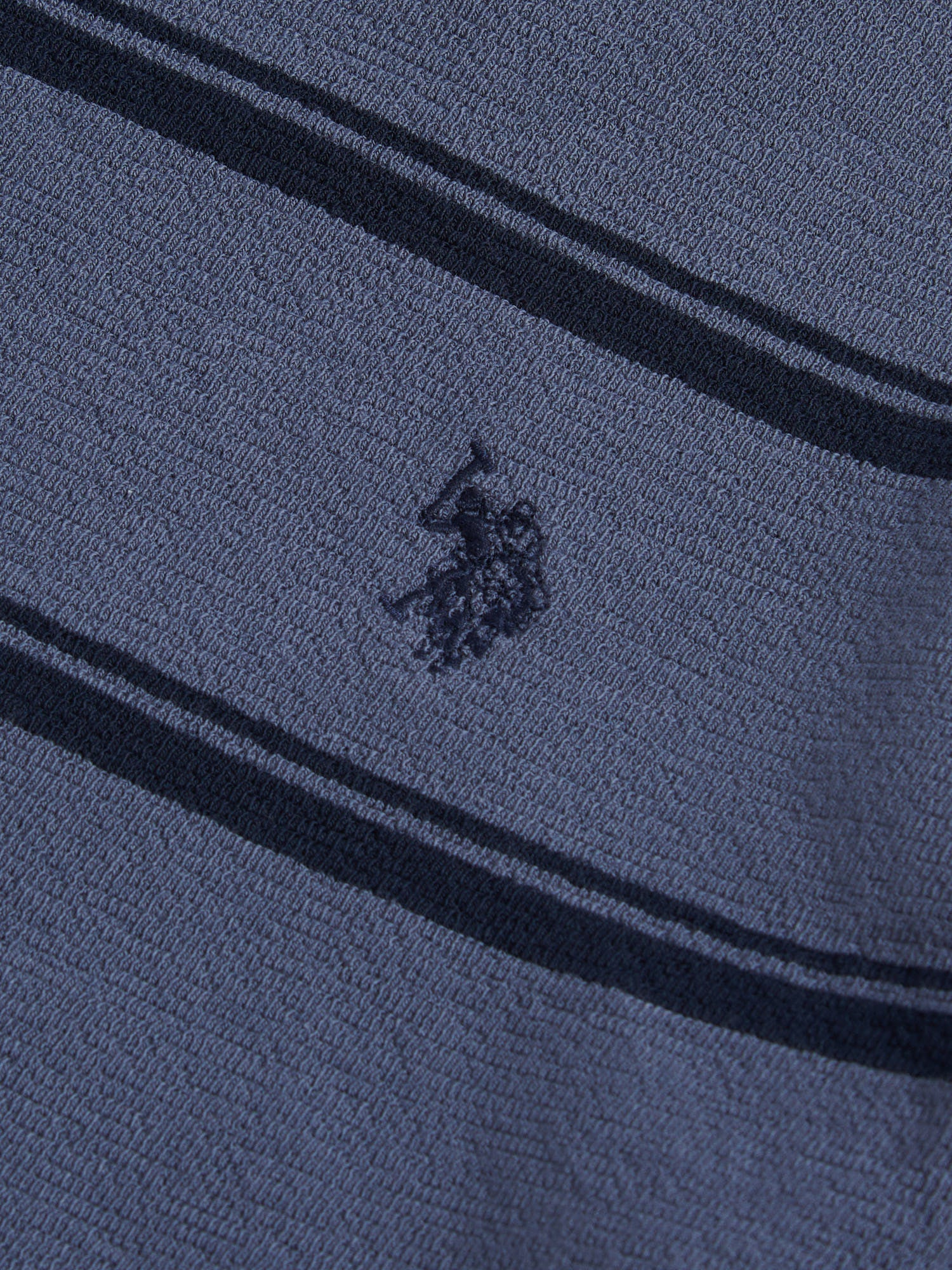 Step up your casual wardrobe with the U.S. Polo Assn. Mens Terry Stripe T-Shirt. With engineered stripes and heritage detailing, this elevated essential delivers laid-back refinement. Pair it with chinos or neutral shorts for a fresh, confident look that works all weekend long.