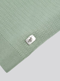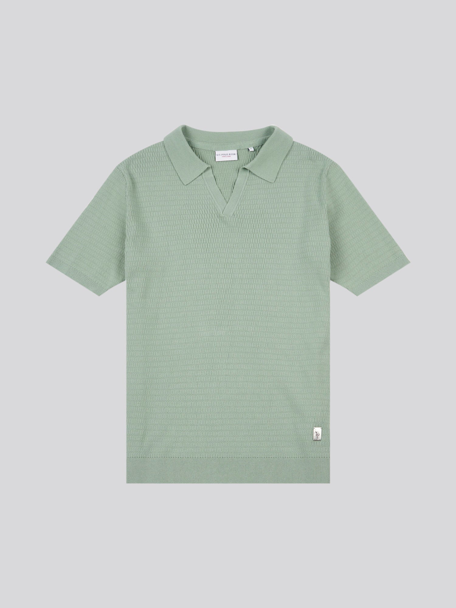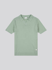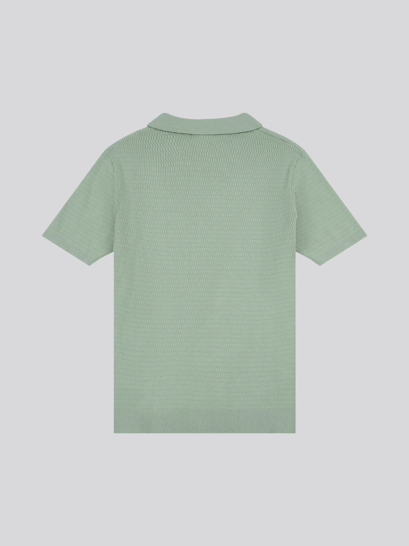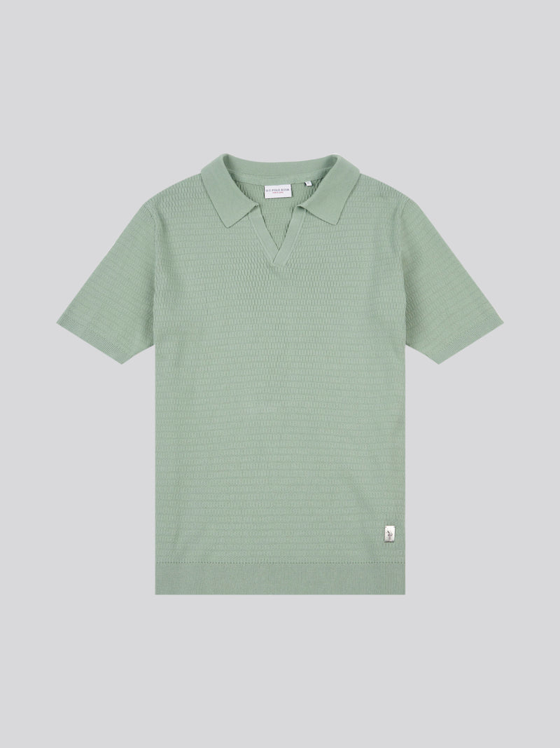 Mens Texture Open Collar Knit Polo Shirt in Green Bay