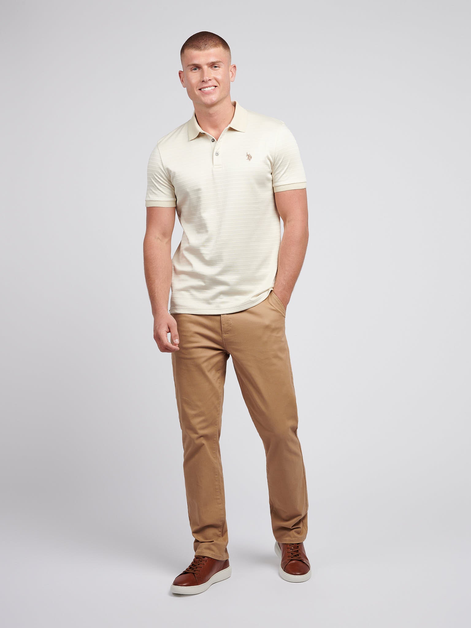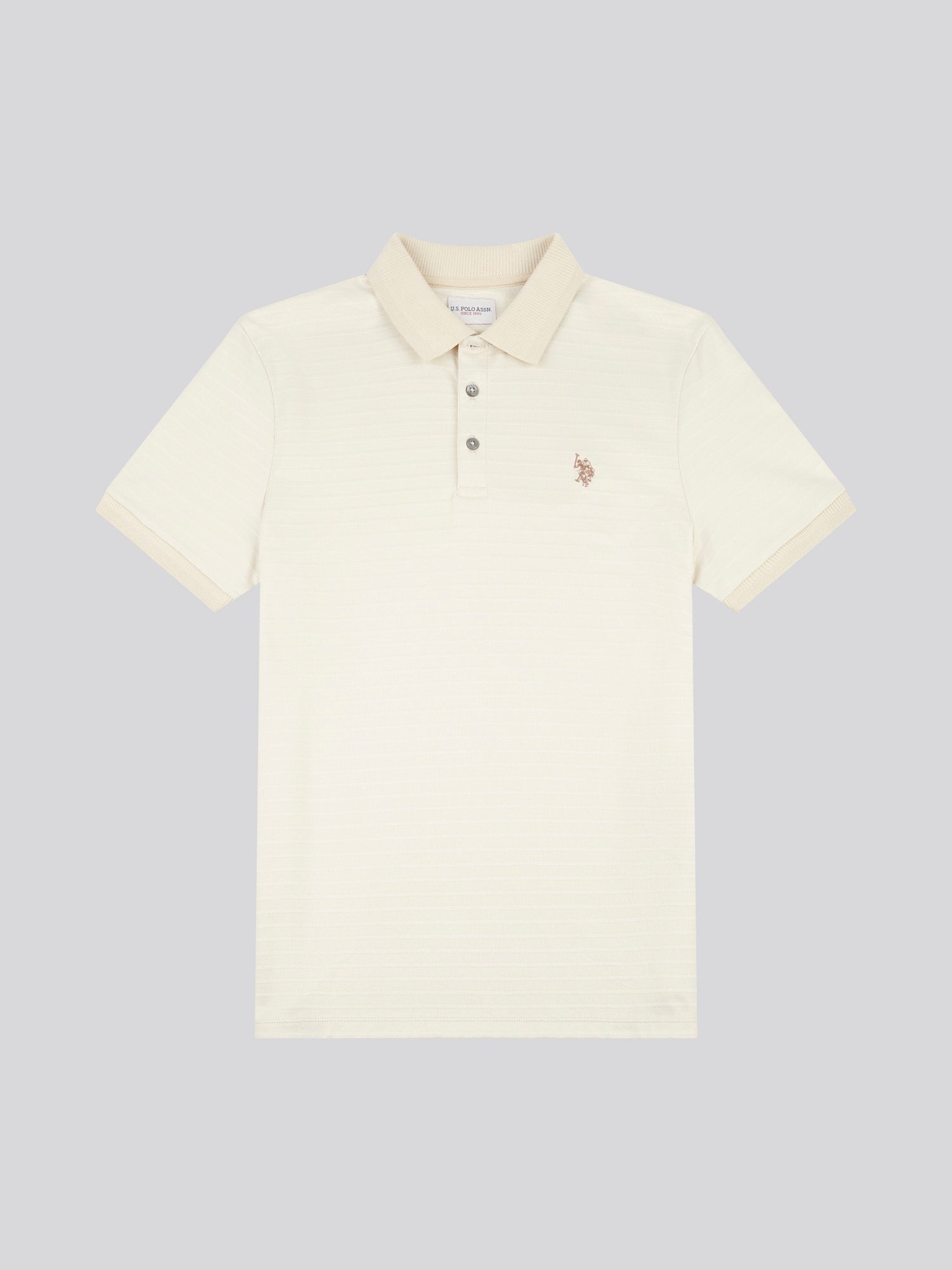 Embrace the epitome of timeless style with the U.S. Polo Assn. Mens Collar Interest Textured Polo Shirt, a masterpiece of sophistication and comfort. Featuring a knitted textured jersey and refined collar details, this polo is perfect for both casual gatherings and semi-formal events. Pair it effortlessly with tailored trousers or dark denim for a sophisticated yet relaxed look.