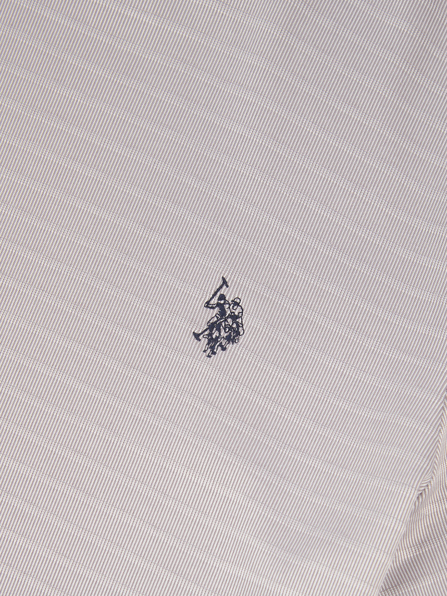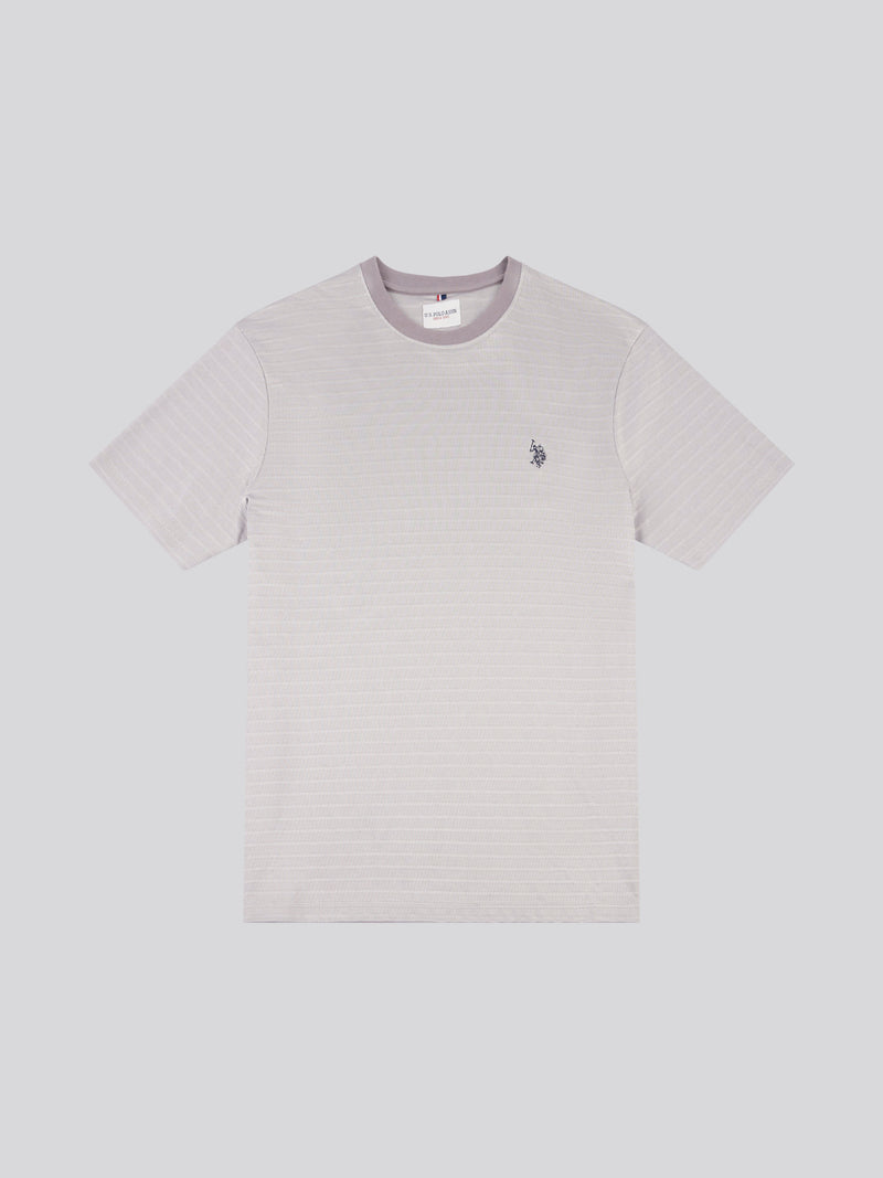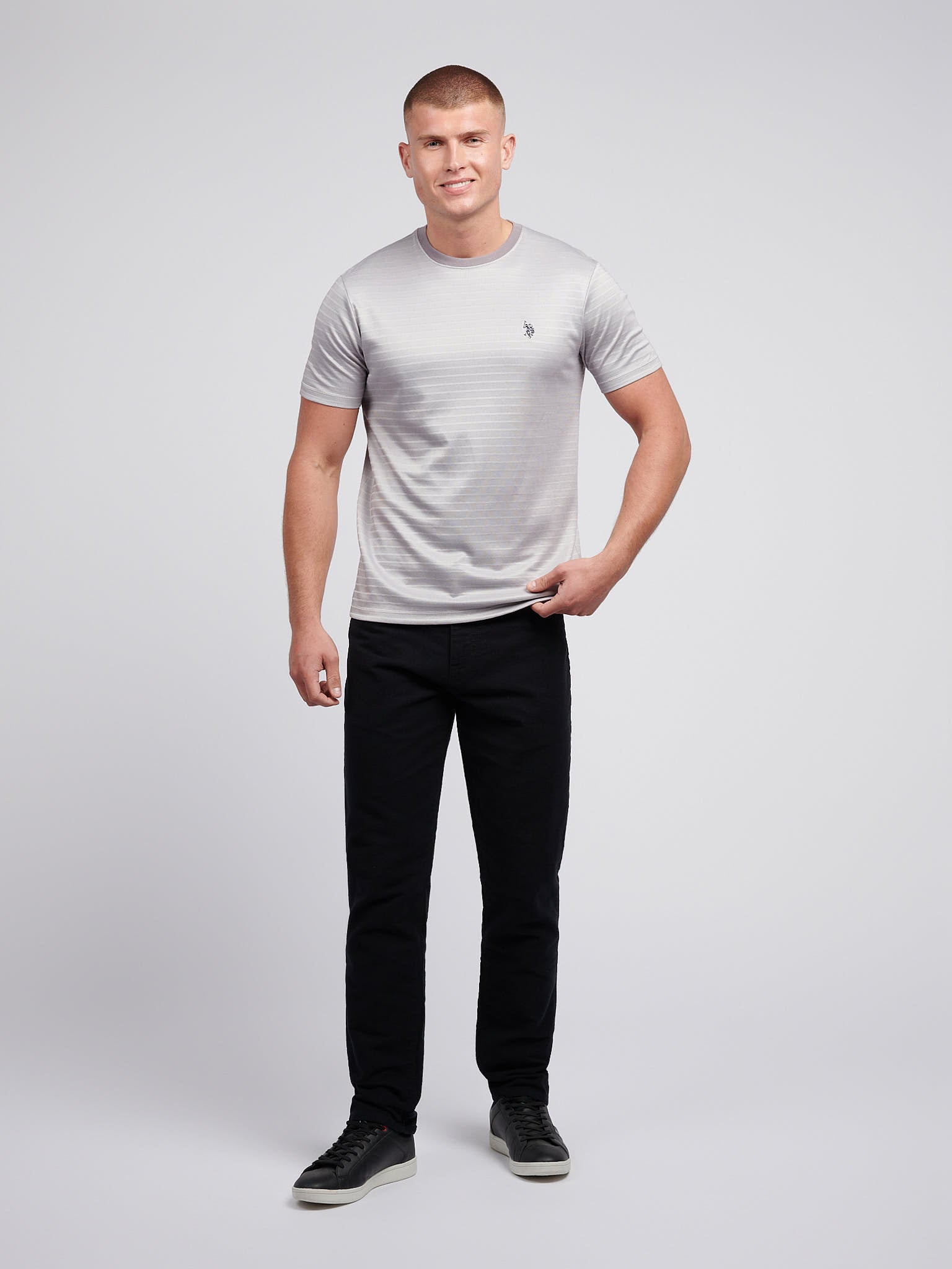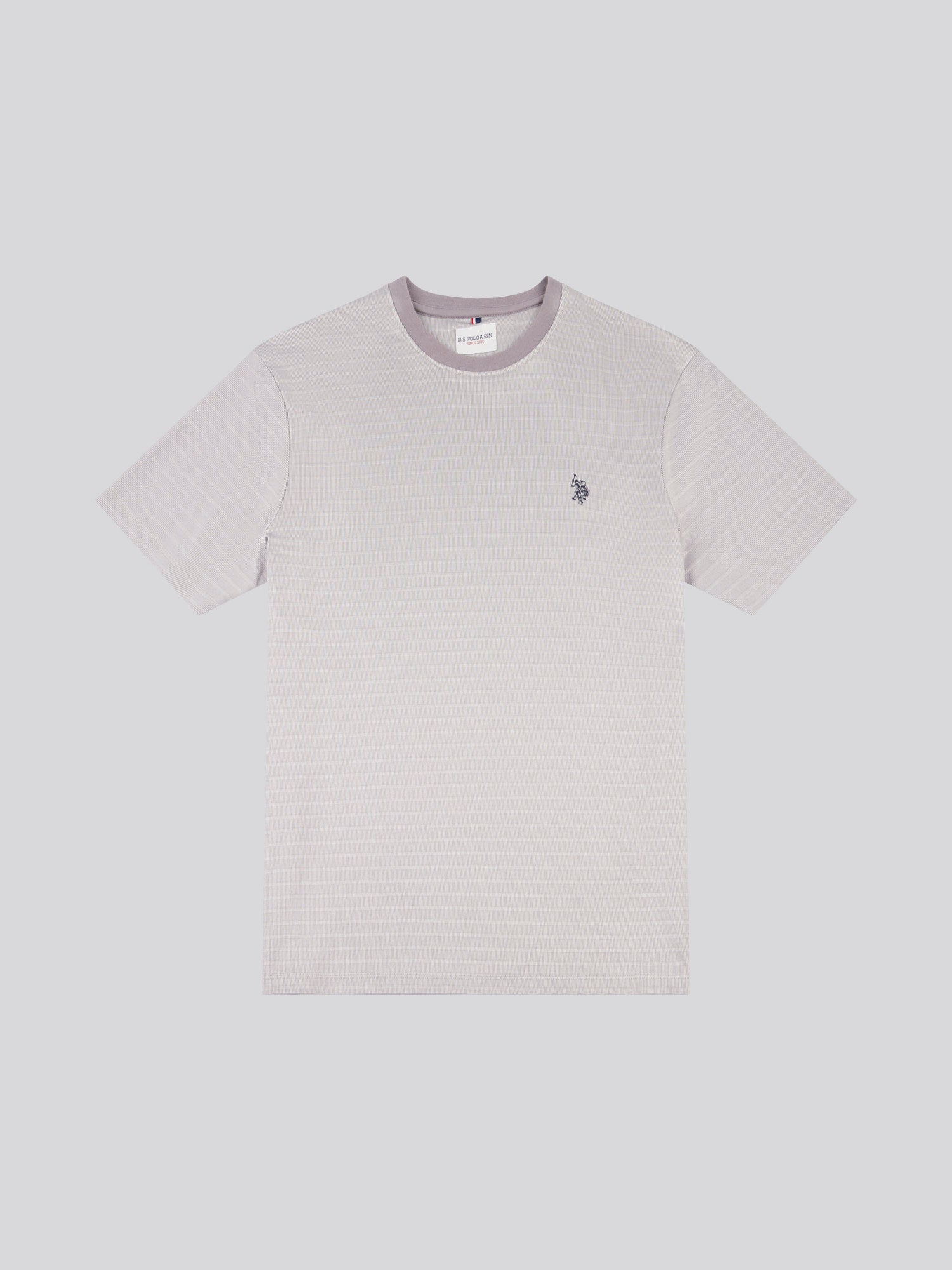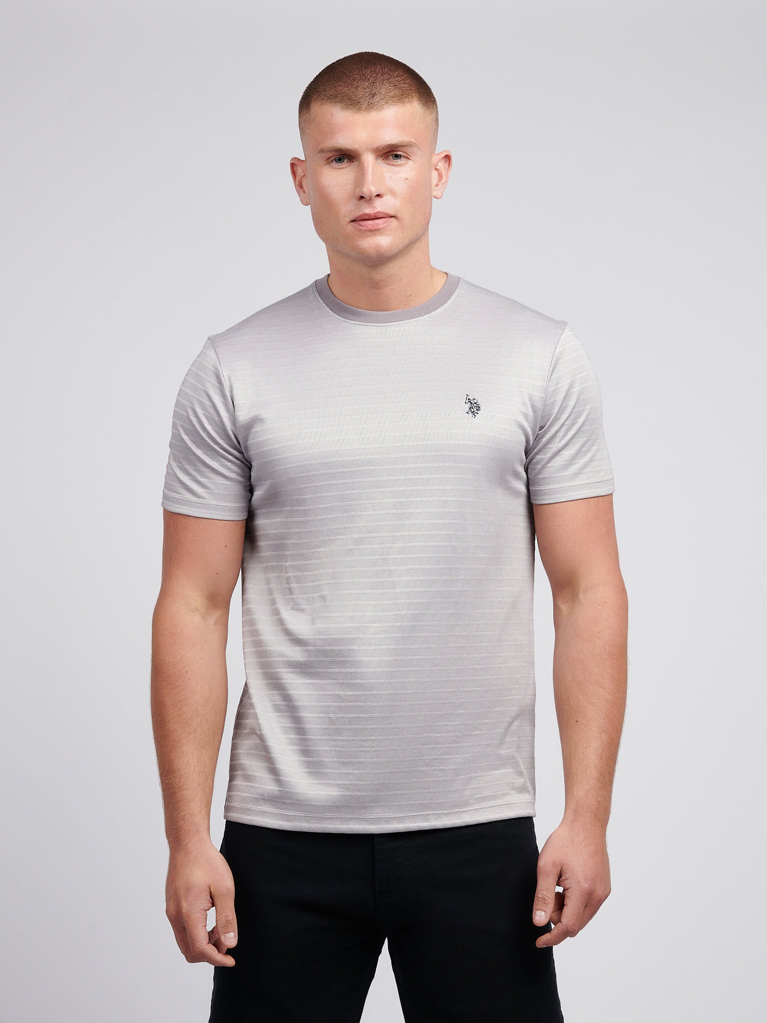 The U.S. Polo Assn. Mens Textured T-Shirt combines refined elegance with everyday comfort. Crafted from a luxury cotton blend in a classic fit, it features a sophisticated textured stripe design and the iconic embroidered double horsemen motif. Pair with chinos and loafers for a polished yet casual look, perfect for relaxed weekends.