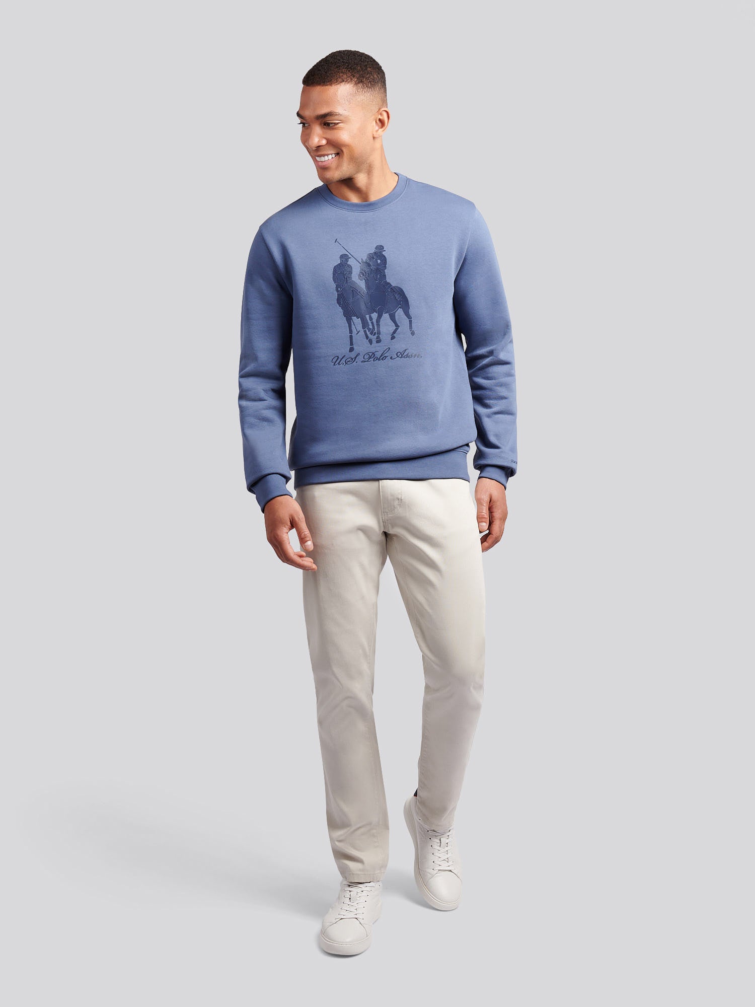 Mens Tonal Double Horsemen Print Crew in Vintage Indigo