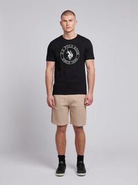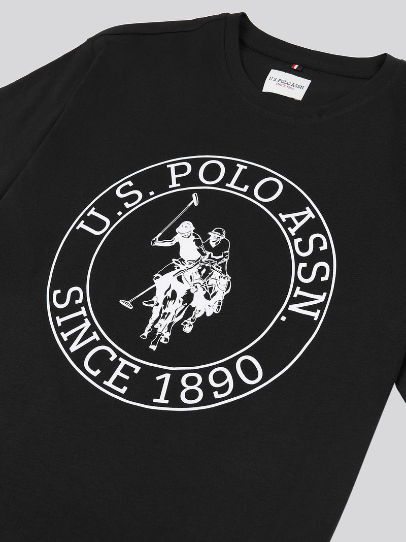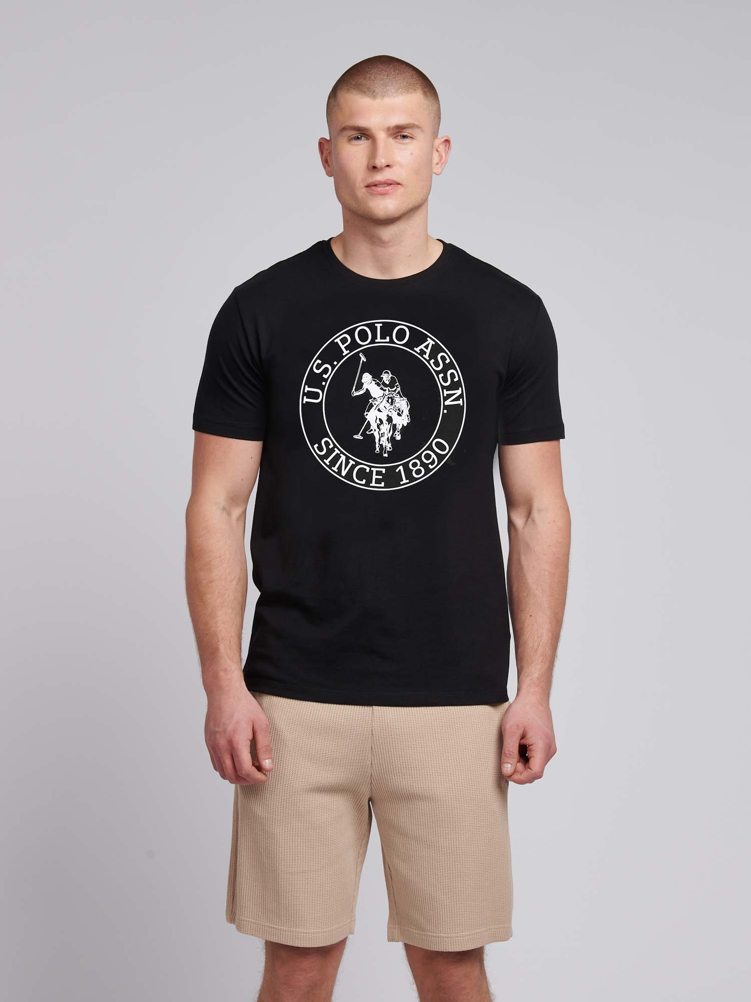 A refined casual piece, the U.S. Polo Assn. Mens USPA Circle Print T-Shirt brings a modern twist to an iconic design. This comfortable 100% cotton tee features a bold circle graphic that nods to the brand's heritage. jeans or chinos for a versatile look that’s effortlessly classic. Pair with a denim jacket for a relaxed, timeless vibe.