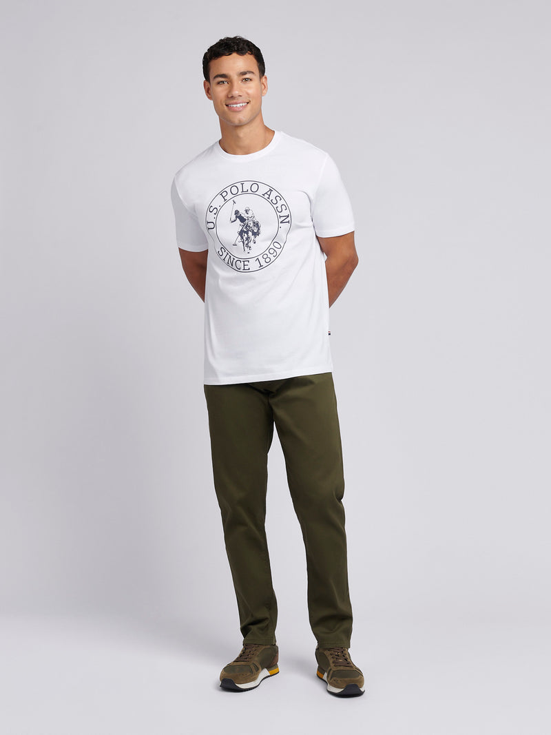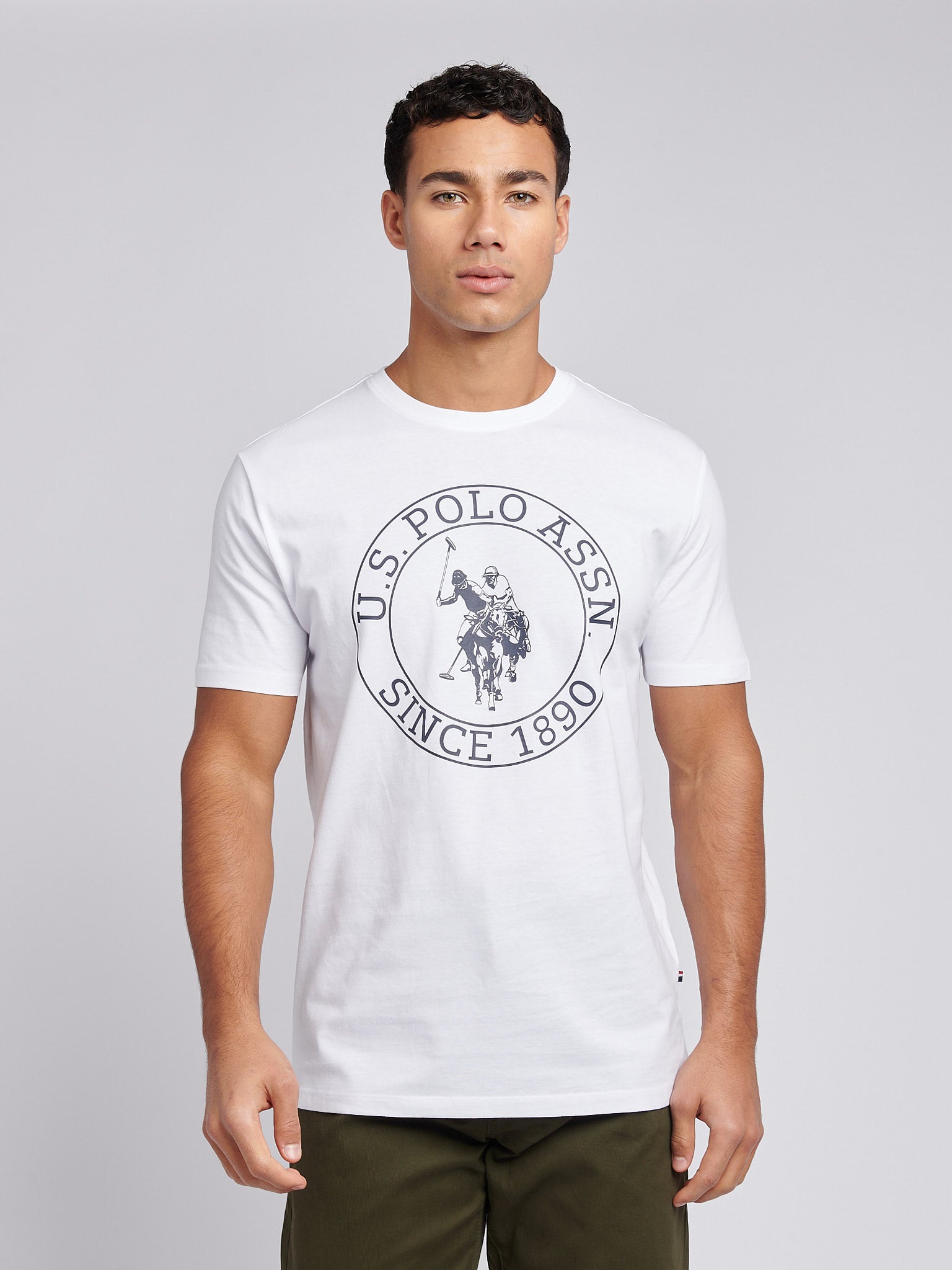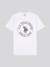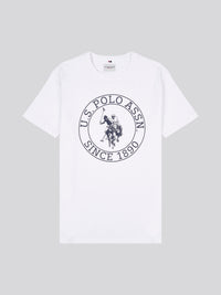 A refined casual piece, the U.S. Polo Assn. Mens USPA Circle Print T-Shirt brings a modern twist to an iconic design. This comfortable 100% cotton tee features a bold circle graphic that nods to the brand's heritage. jeans or chinos for a versatile look that’s effortlessly classic. Pair with a denim jacket for a relaxed, timeless vibe.