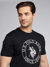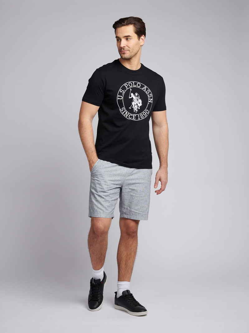 A refined casual piece, the U.S. Polo Assn. Mens USPA Circle Print T-Shirt brings a modern twist to an iconic design. This comfortable 100% cotton tee features a bold circle graphic that nods to the brand's heritage. jeans or chinos for a versatile look that’s effortlessly classic. Pair with a denim jacket for a relaxed, timeless vibe.
