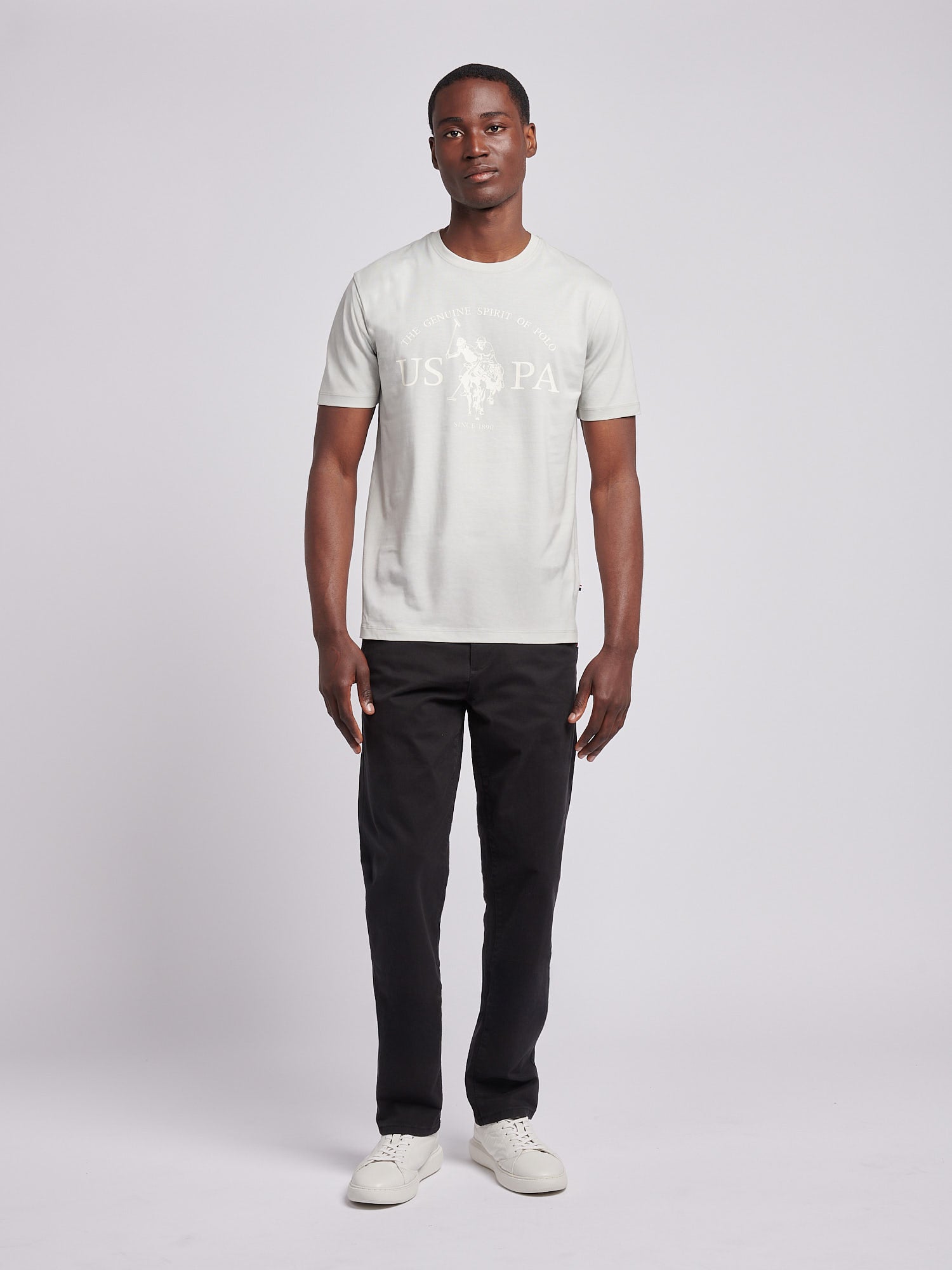 Make a bold statement with the U.S. Polo Assn. Mens USPA Print Graphic T-Shirt. Crafted for comfort and style, this tee features a striking USPA print, perfect for elevating your casual wardrobe. Pair with jeans or chinos for a relaxed yet polished look.