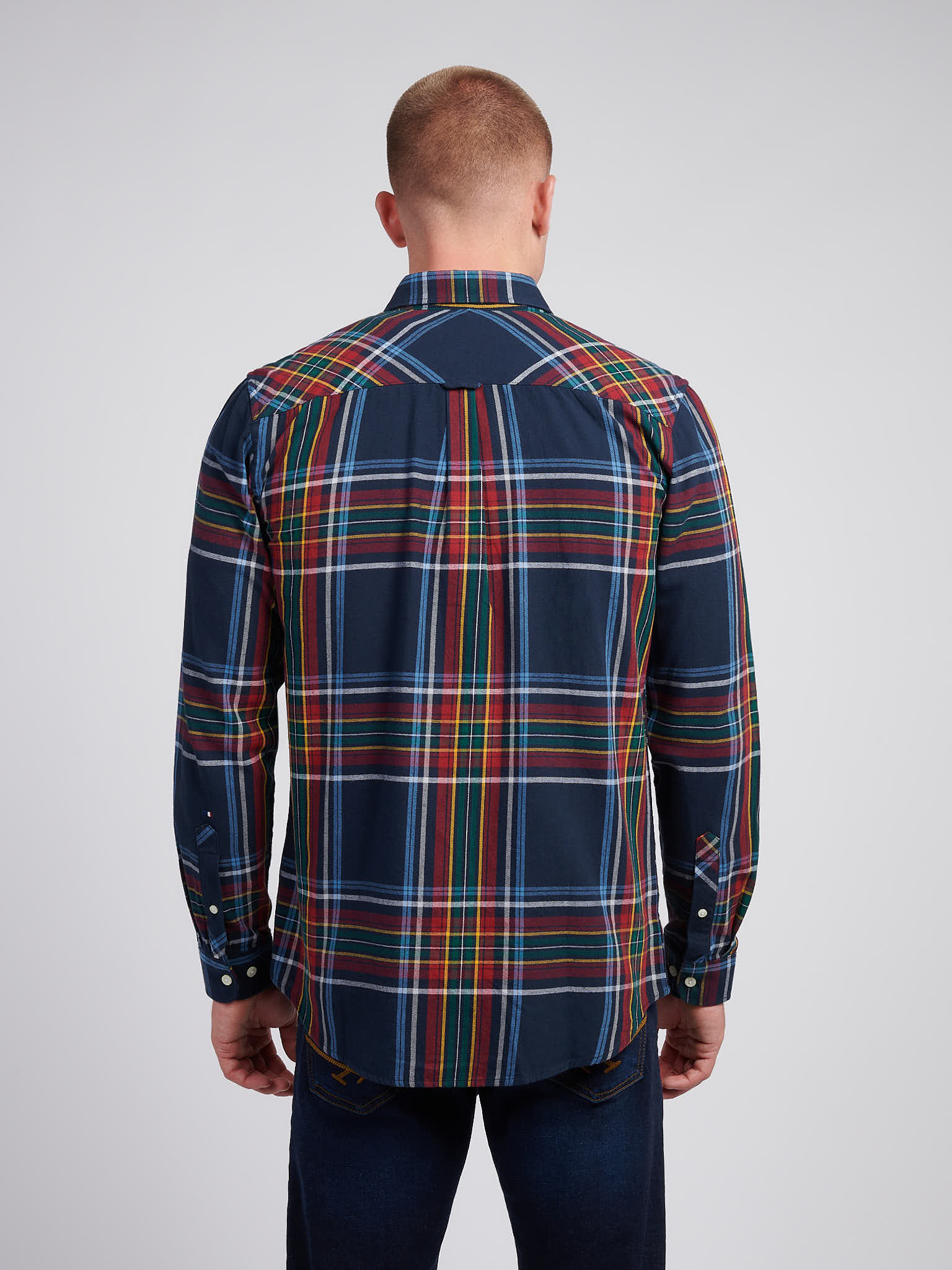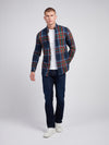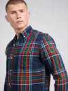 Mens Variation Check Cotton Twill Shirt in Dark Sapphire Navy